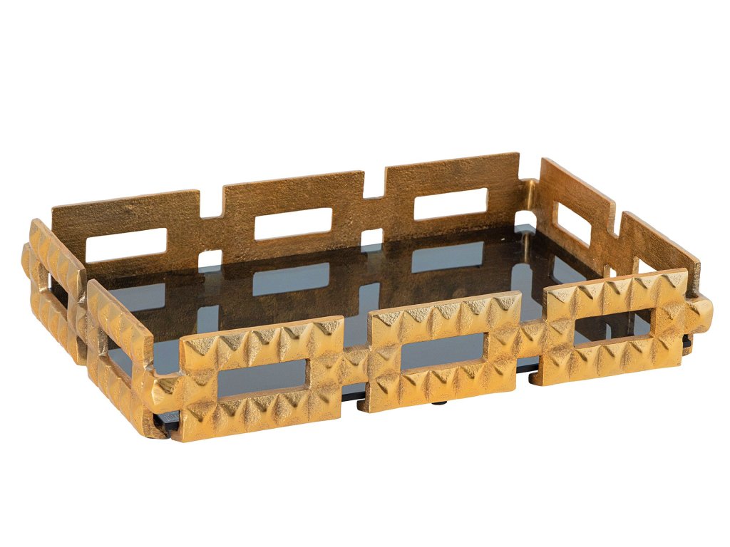 Podnos VARIATION 40cm sklo černý hliník zlato