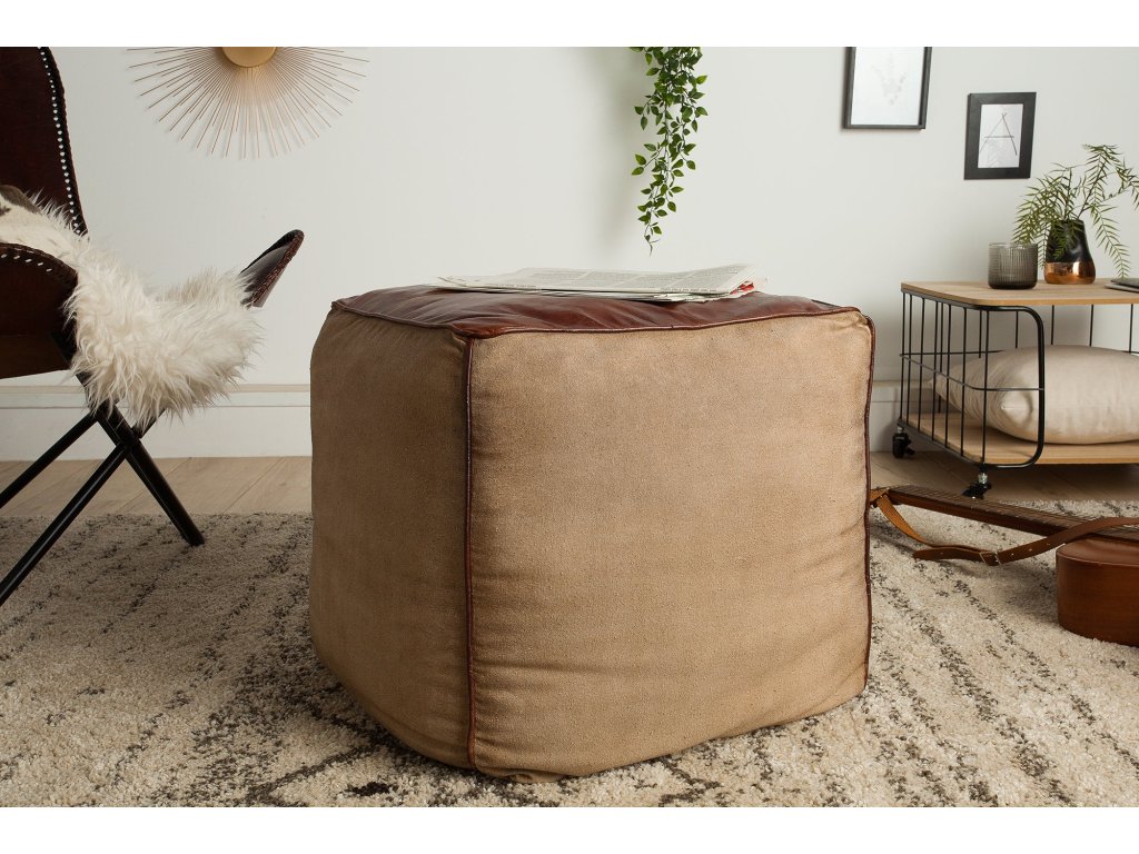 Podnožka MUSTANG 45cm pravá kůže a len hnědá