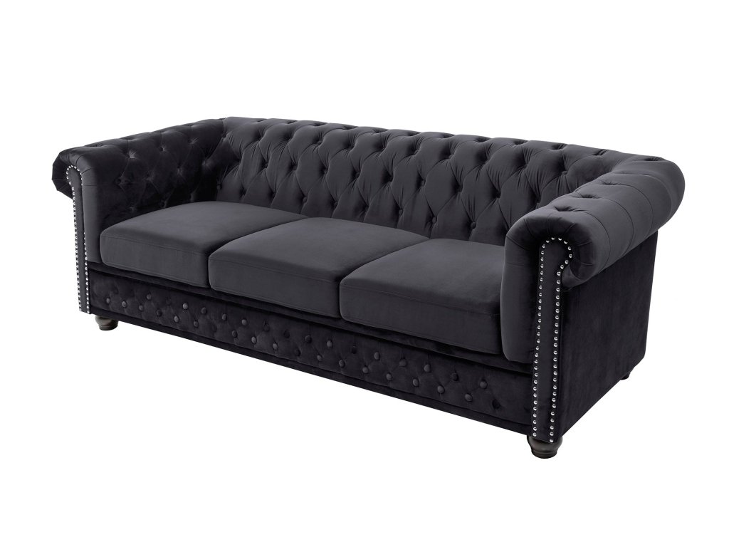 Pohovka CHESTERFIELD 205 cm pružinové jádro 3místná sametová černá