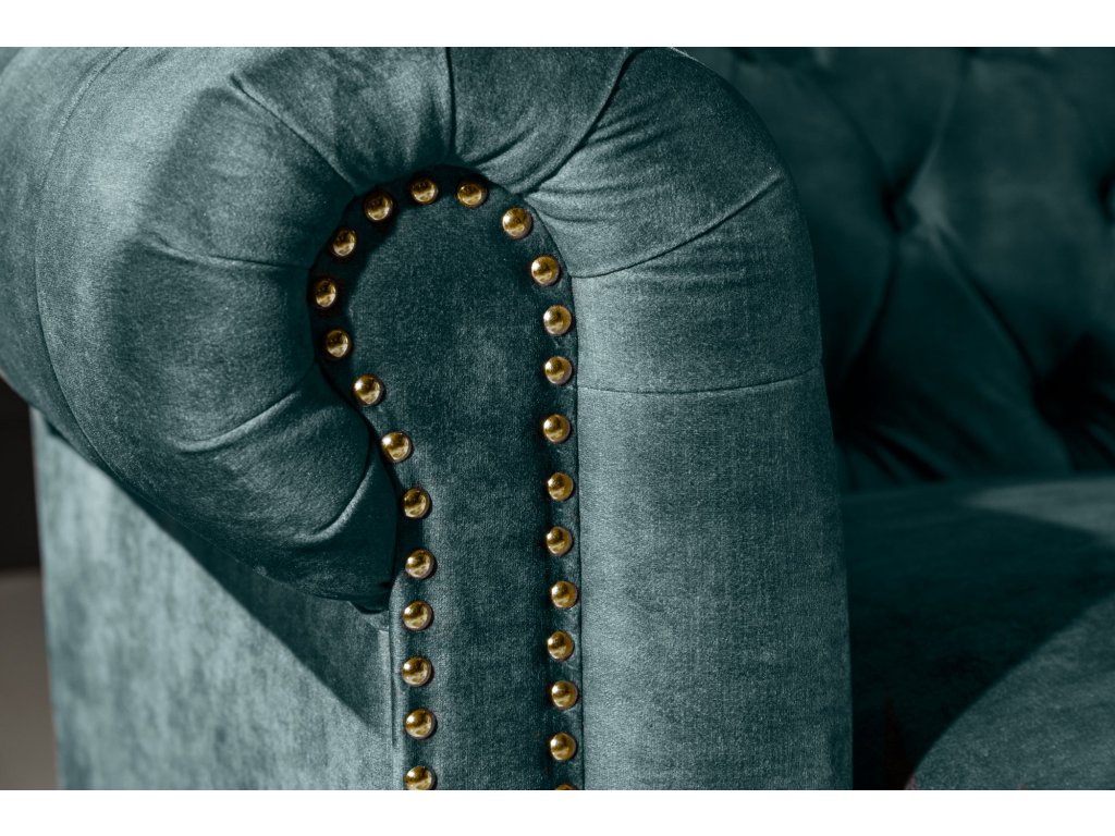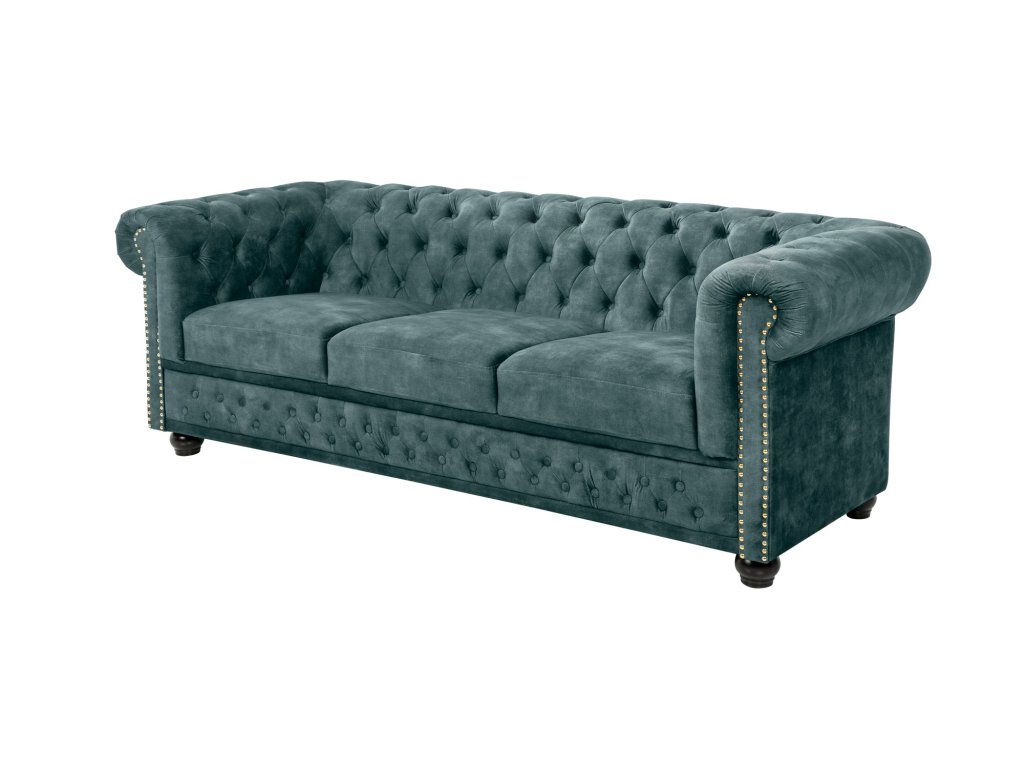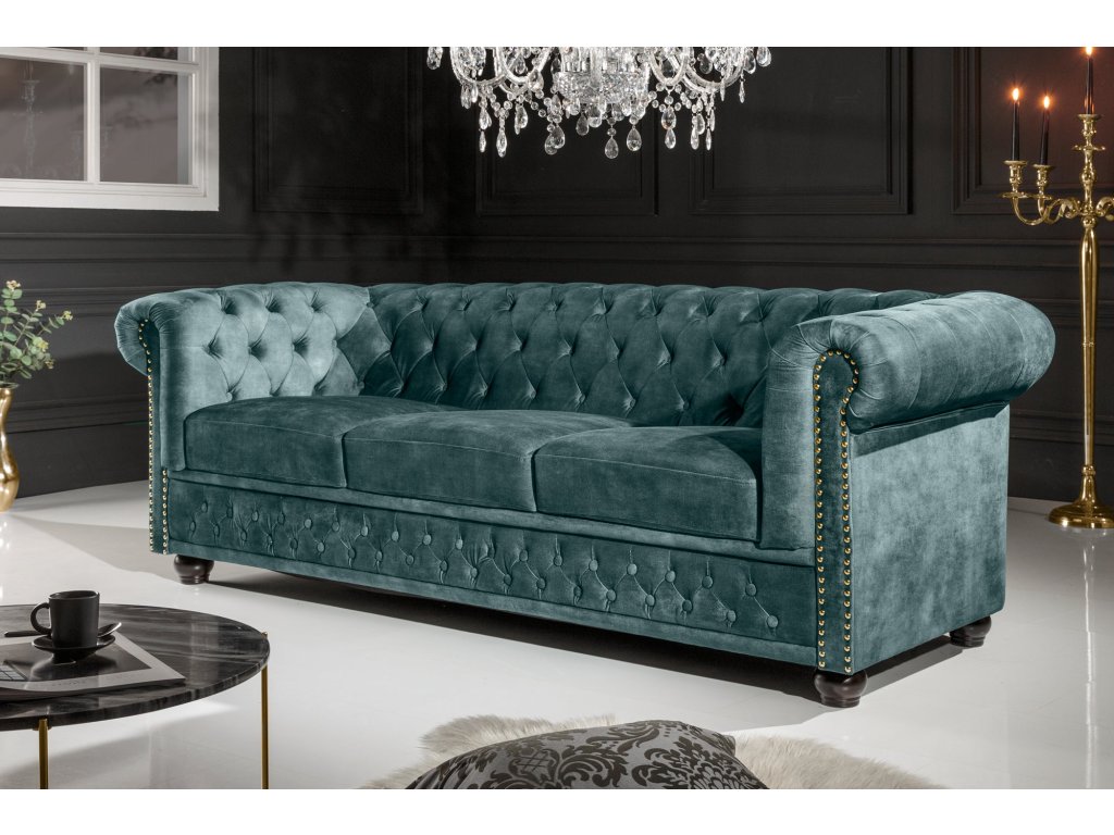 Pohovka CHESTERFIELD 205cm 3místná sametově modrozelená