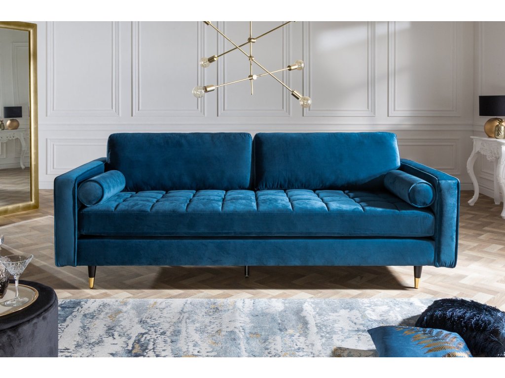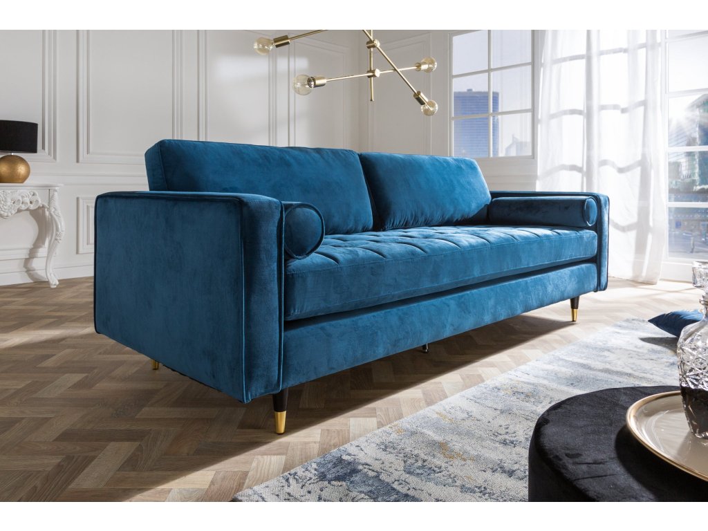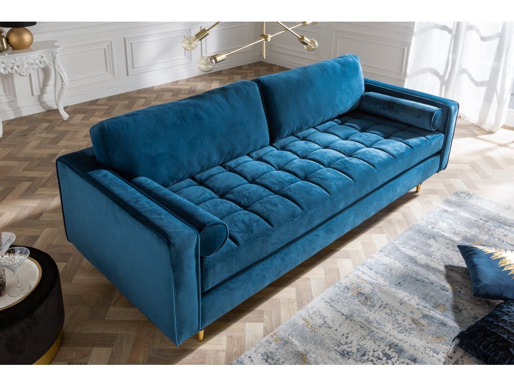 Pohovka COZY VELVET 220cm 3místná sametově modrozelená