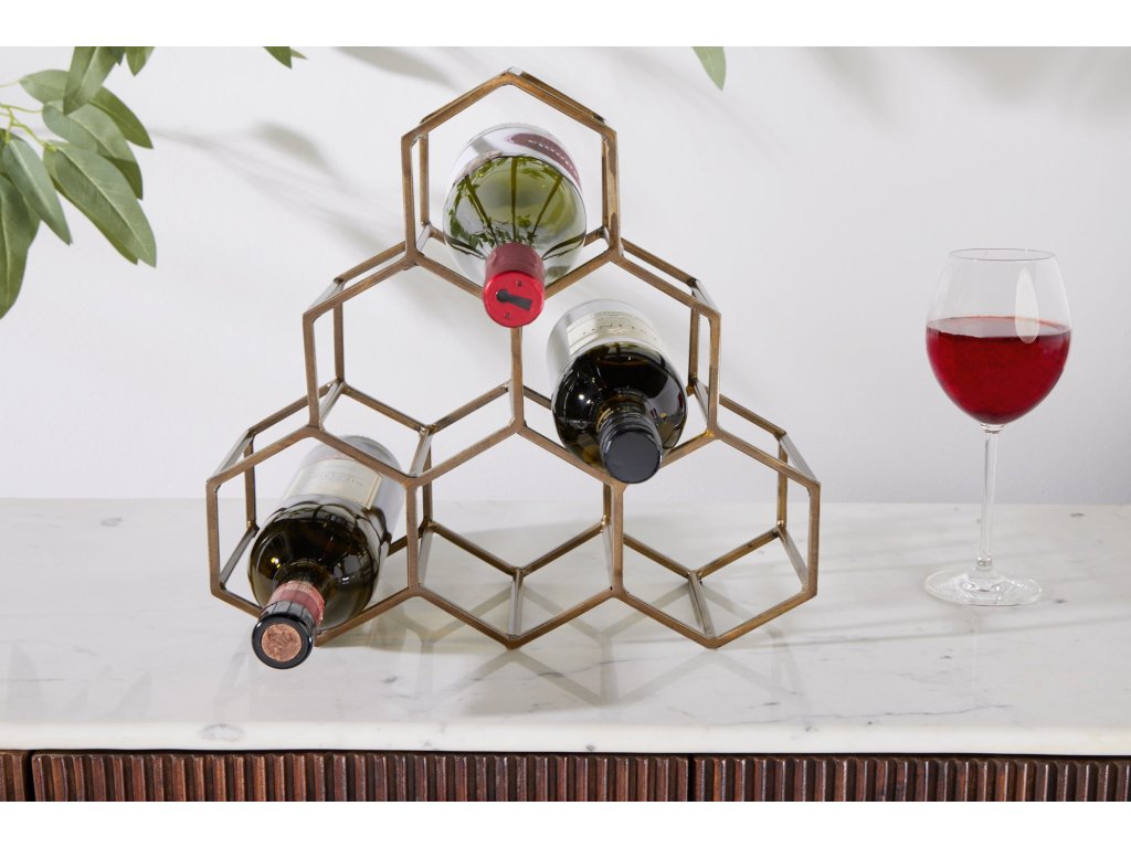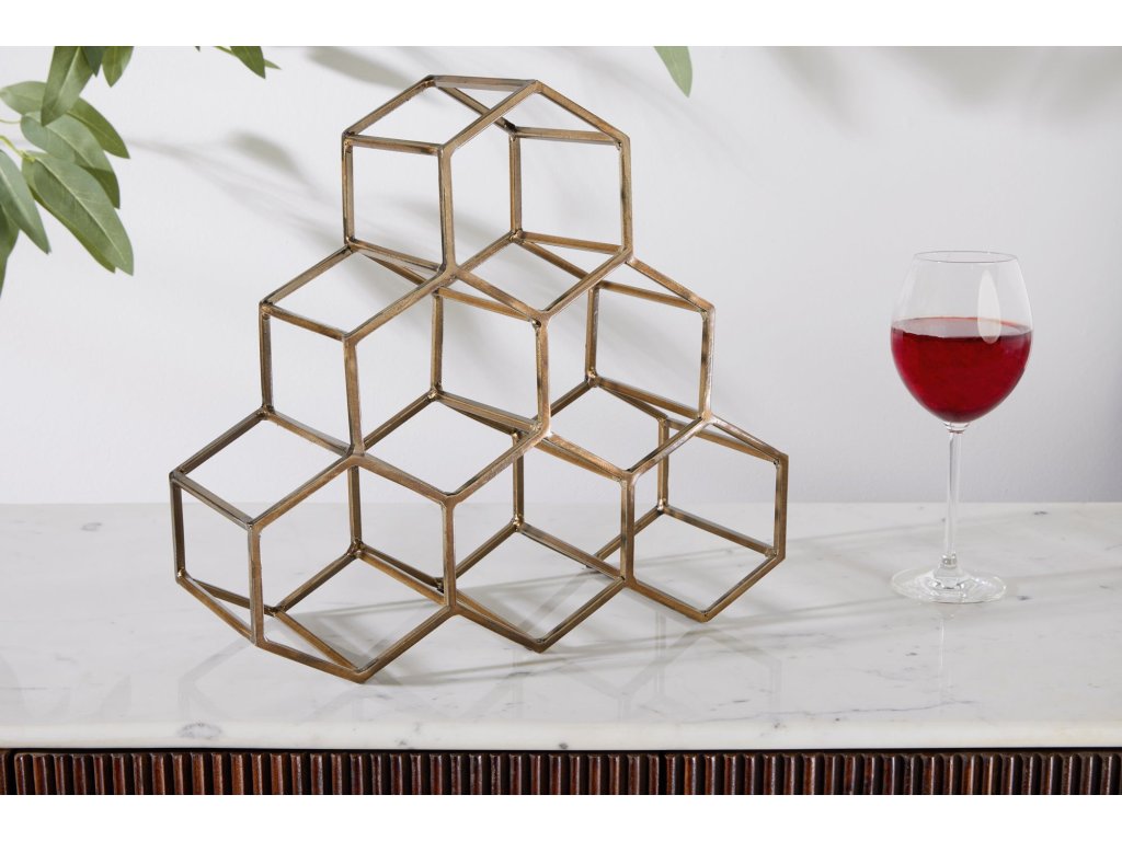 Police na víno HONEYCOMB 35cm na 6 lahví zlatá