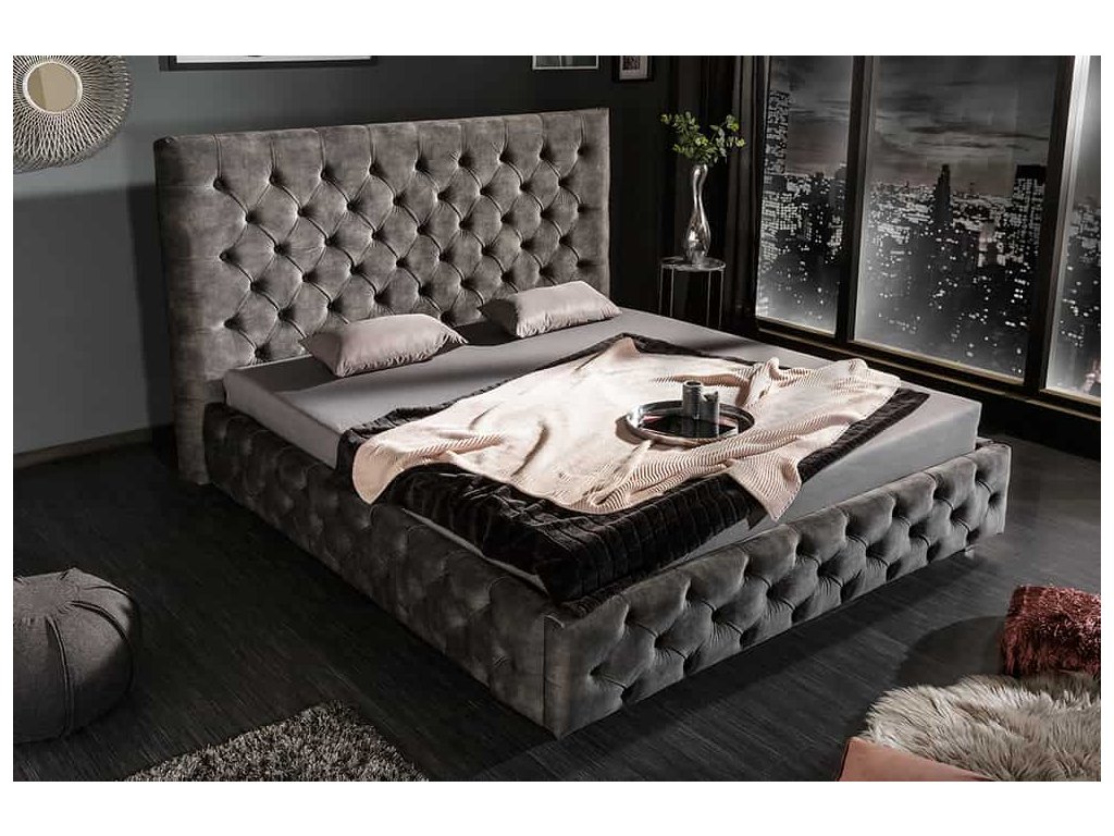 Postel PARIS CHESTERFIELD 160x200cm samet olivově šedá