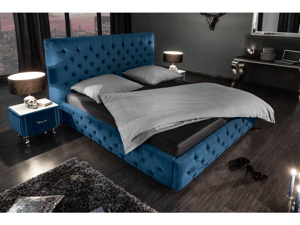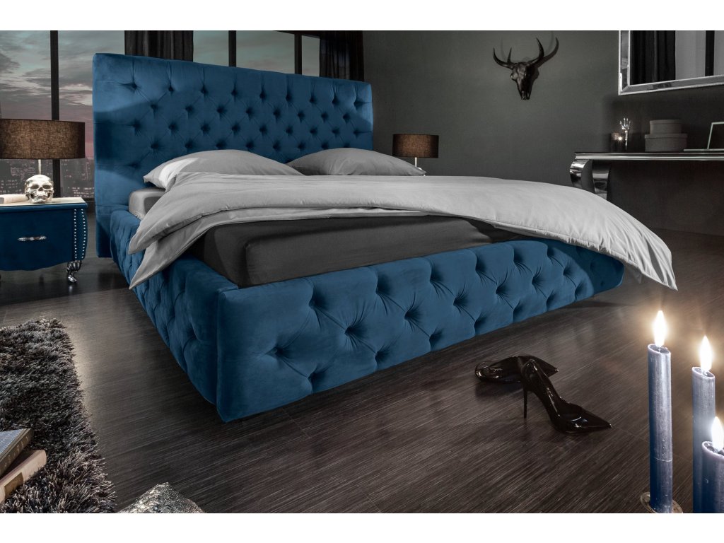Postel PARIS CHESTERFIELD 160x200cm sametová tmavě modrá