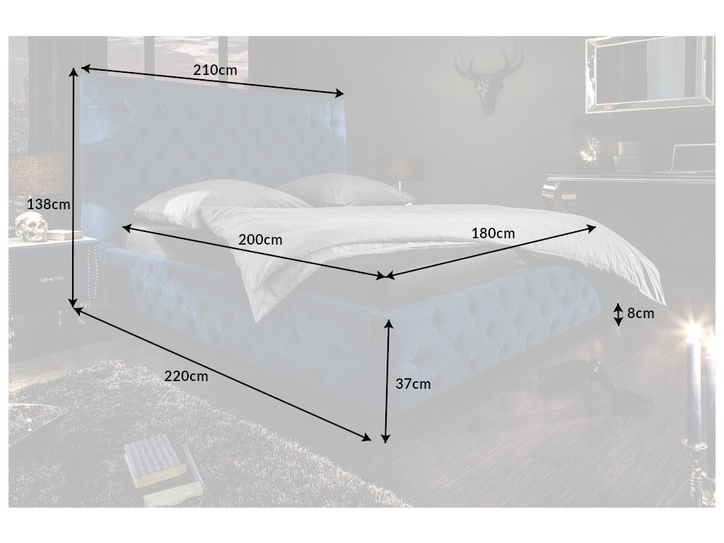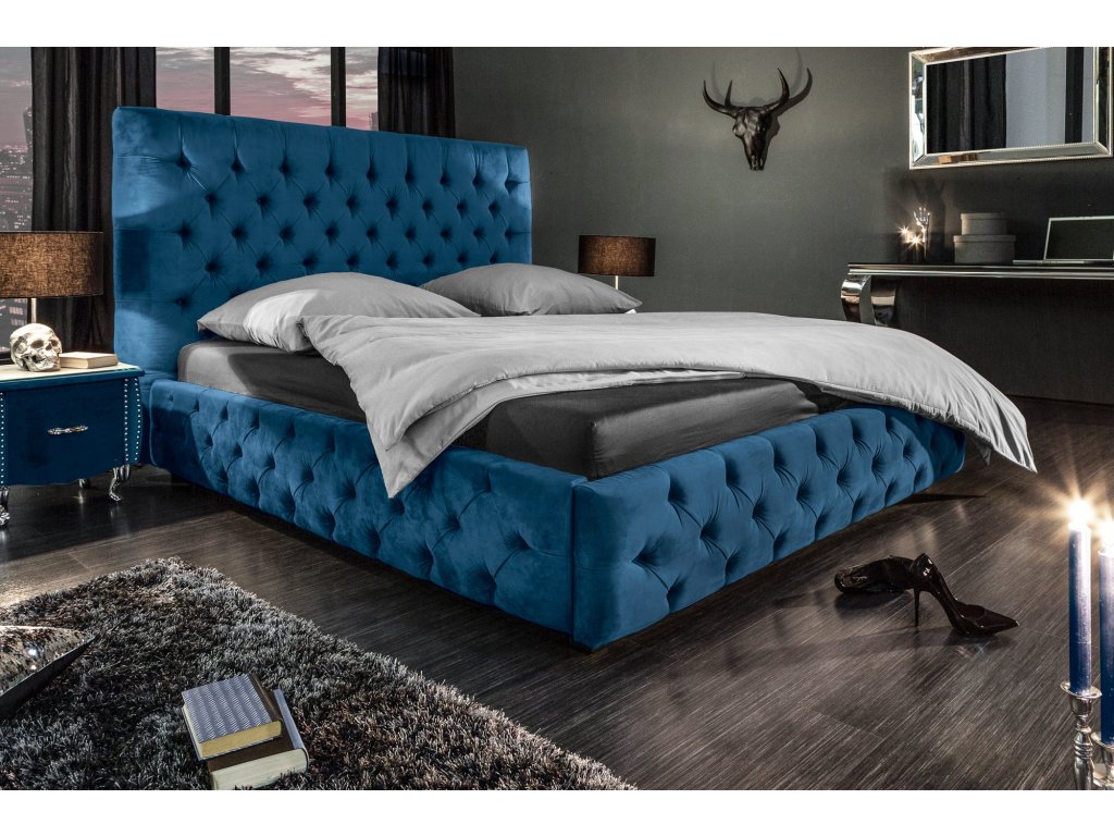Postel PARIS CHESTERFIELD 180x200cm sametová tmavě modrá