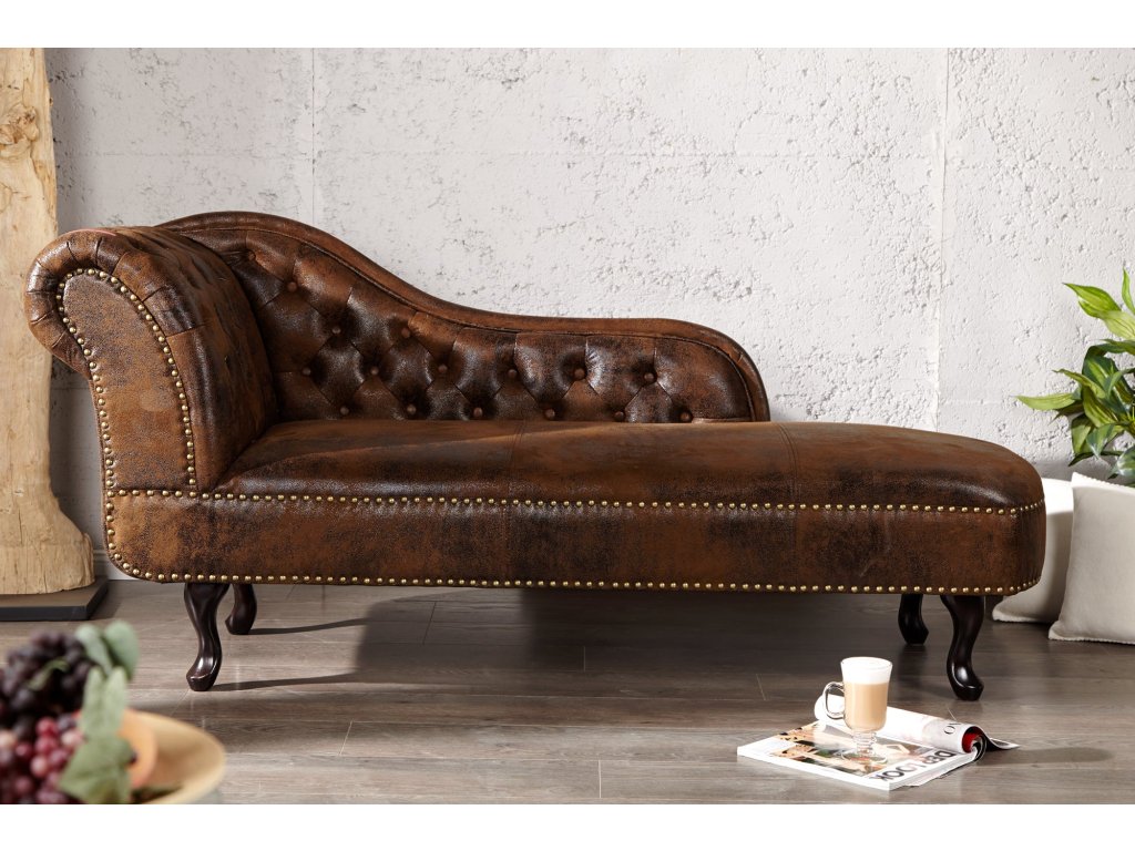 Recamiere CHESTERFIELD starožitný vzhled hnědý