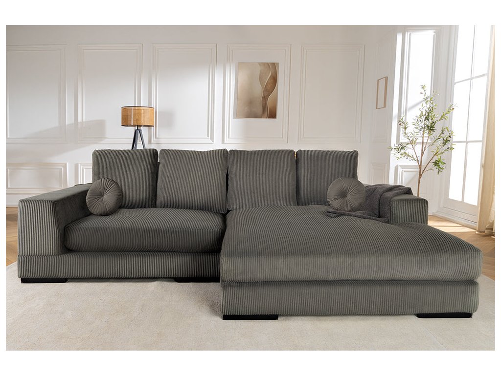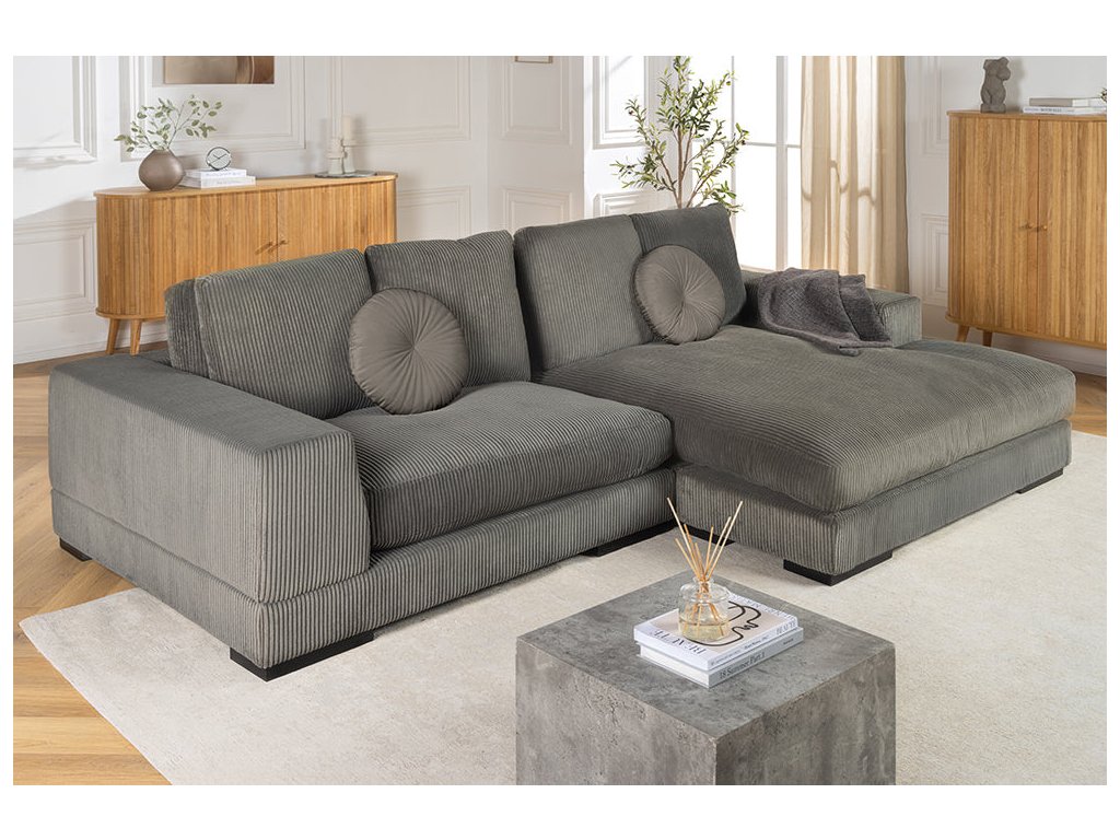 Rohová pohovka BABYLON 270 cm XXL s šňůrou na taburetku šedá
