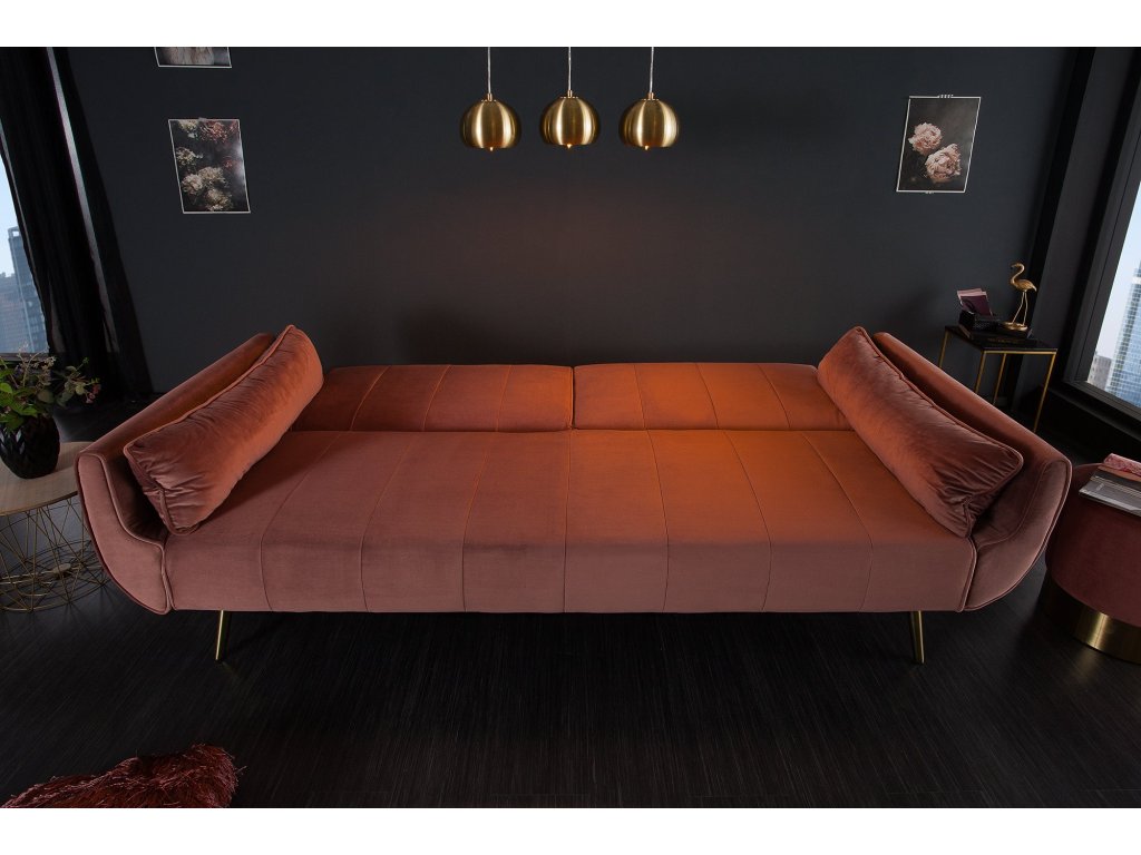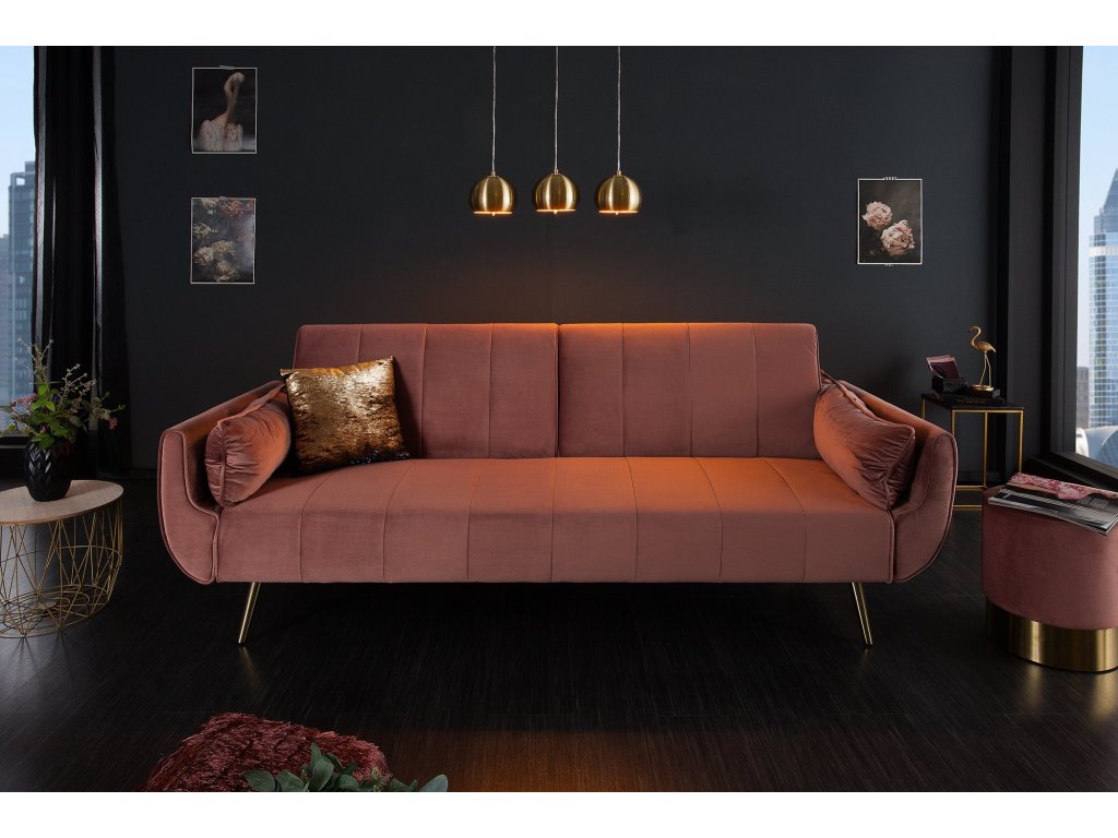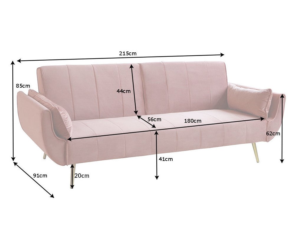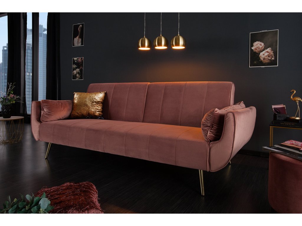 Rozkládací pohovka DIVANI 215cm s područkami sametově tmavě růžová