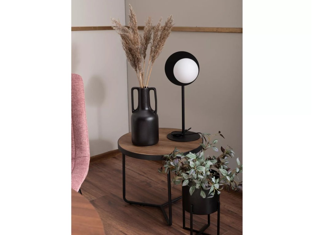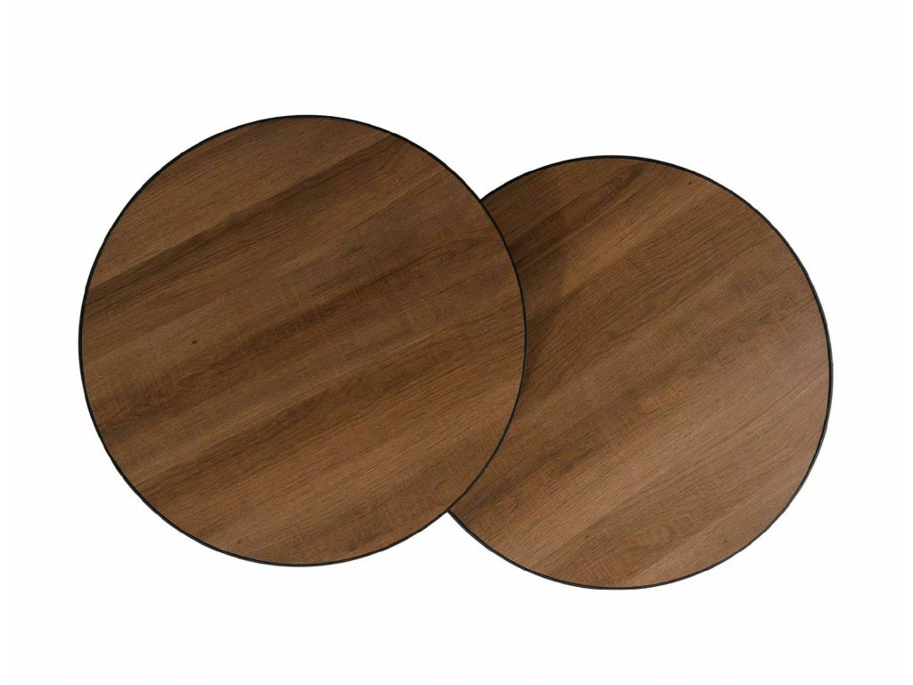 Sada konferenčních stolků, deska: MDF + dýha, rám: kov, barva: ořech / černá. Rozměry menšího stolku: průměr - 50cm, výška - 45cm.