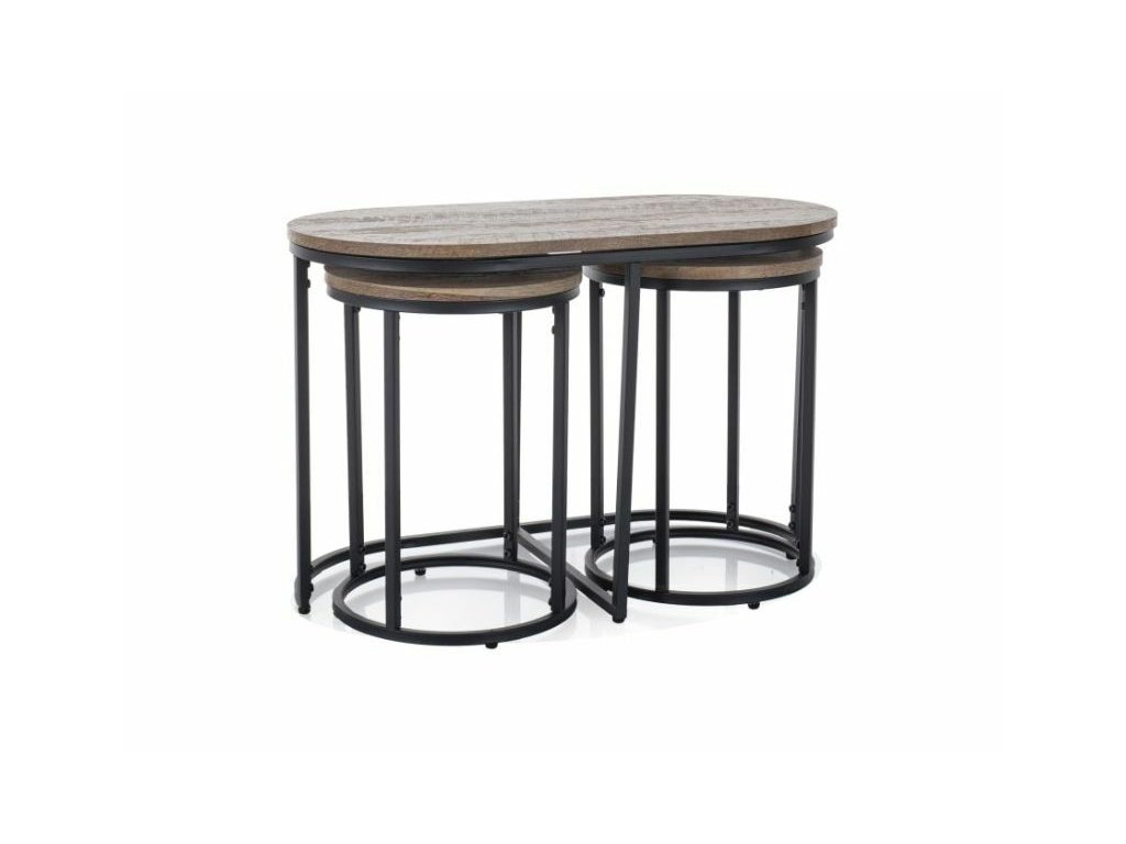 Sada laviček, deska: MDF + dýha, rám: kov, barva: vintage ořech / matná černá. Rozměry sady: fi-32, v-45 cm.