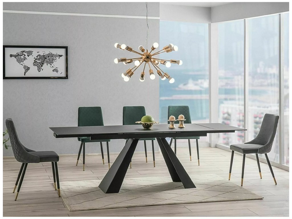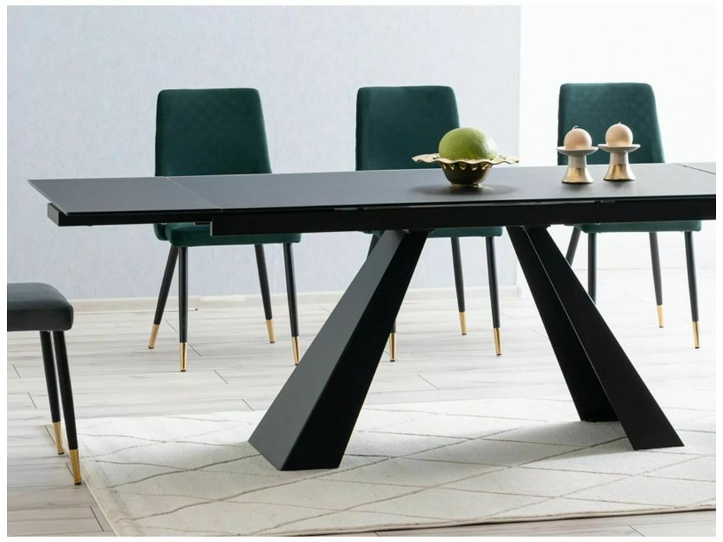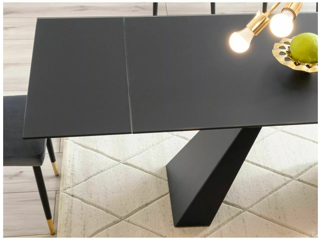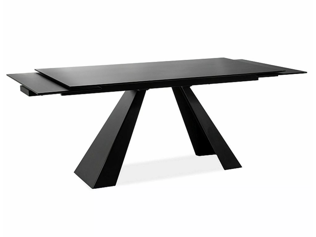 Stůl, deska: tvrzené sklo, rám: kov, barva: matná černá.