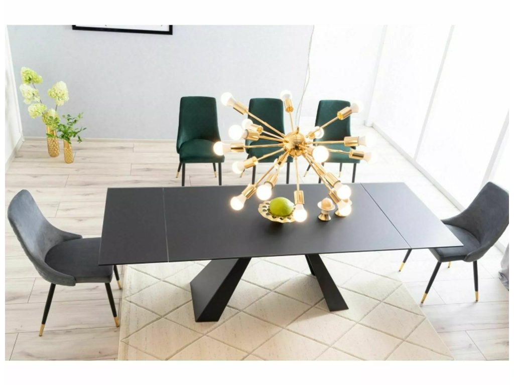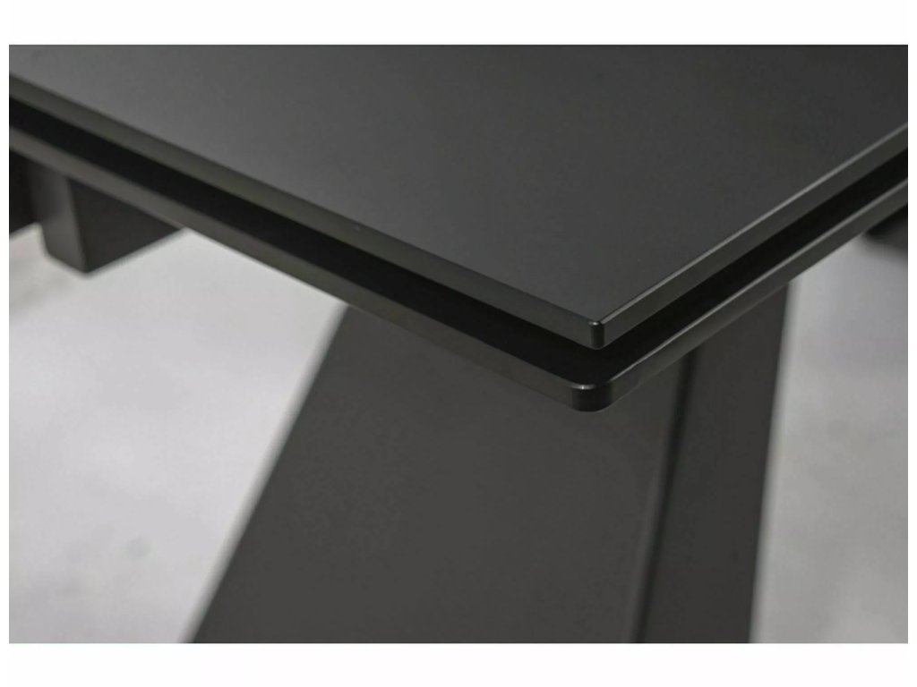 Rozkládací stůl, deska: tvrzené sklo, rám: kov, barva: matná černá.