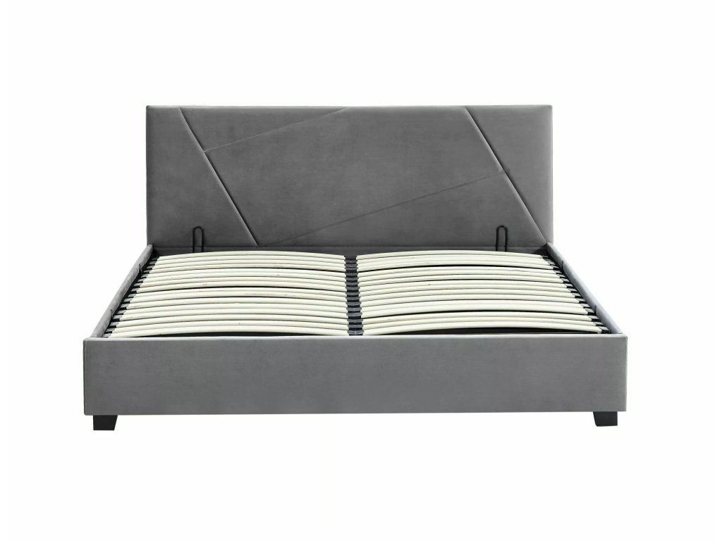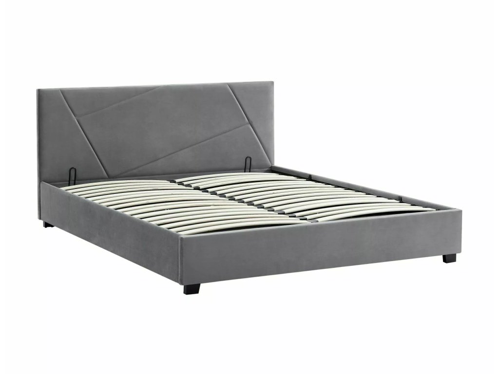 Postel s úložným prostorem, sametová látka, barva: 192 šedá. Součástí je rám ze zakřivených lamel upevněných na flexibilních konzolách. Plynové pružiny. Rozměr matrace: 140x200cm (cena bez matrace).