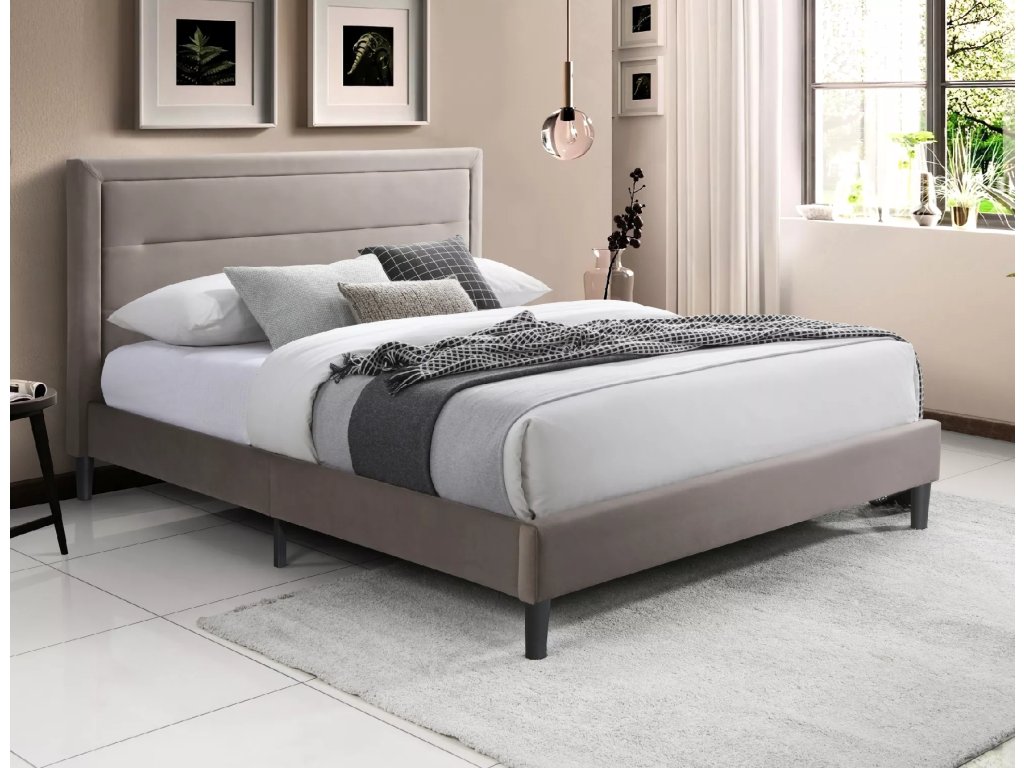 Sametová postel Bluvel 40, tmavě béžová, čalouněná, včetně lamelového roštu. Rozměr matrace 160x200cm (cena bez matrace).