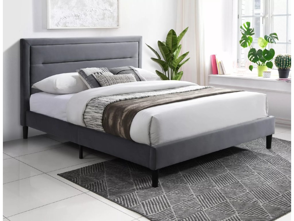 Sametová postel Bluvel 14, šedá, čalouněná, včetně lamelového roštu. Rozměr matrace 160x200cm (cena bez matrace).