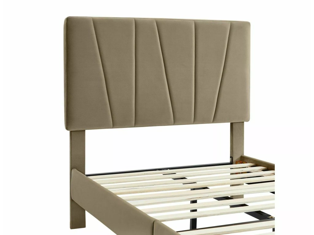 Postel z sametové látky Bluvel, barva: 28 béžová. Součástí je dřevěný lamelový rošt. Rozměr matrace: 90x200cm (cena bez matrace).