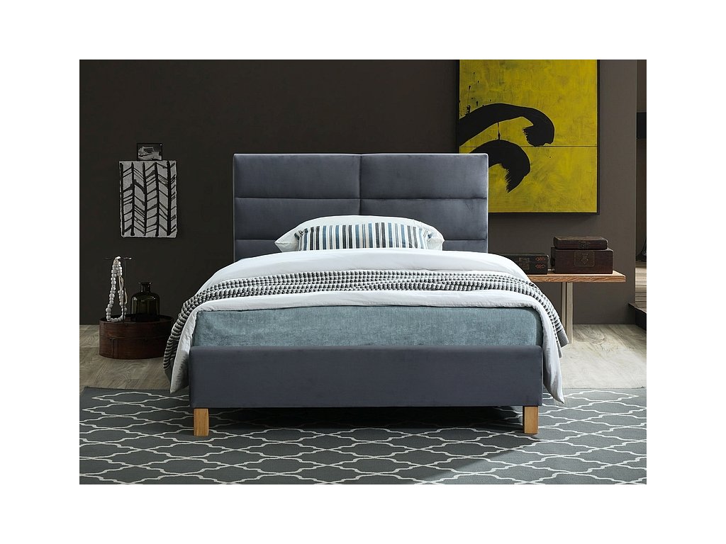 Sametová postel, barva: šedá, čalounění 150 cm, součástí je rám s pružinovými lamelami upevněnými na flexibilních držácích. Rozměr matrace: 120x200 cm (cena bez matrace).