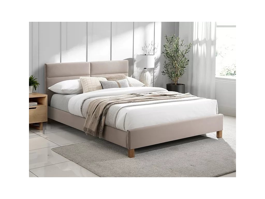 Postel z sametové látky Bluvel, barva: 28 béžová/dub. Součástí je rám ze zakřivených lamel s flexibilními držáky. Rozměr matrace: 120x200cm (cena bez matrace).