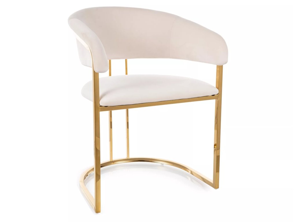 Židle, čalounění: sametová látka: Bluvel 22, rám: nerezová ocel, barva: světle béžová / zlatá.Doplňkové parametry