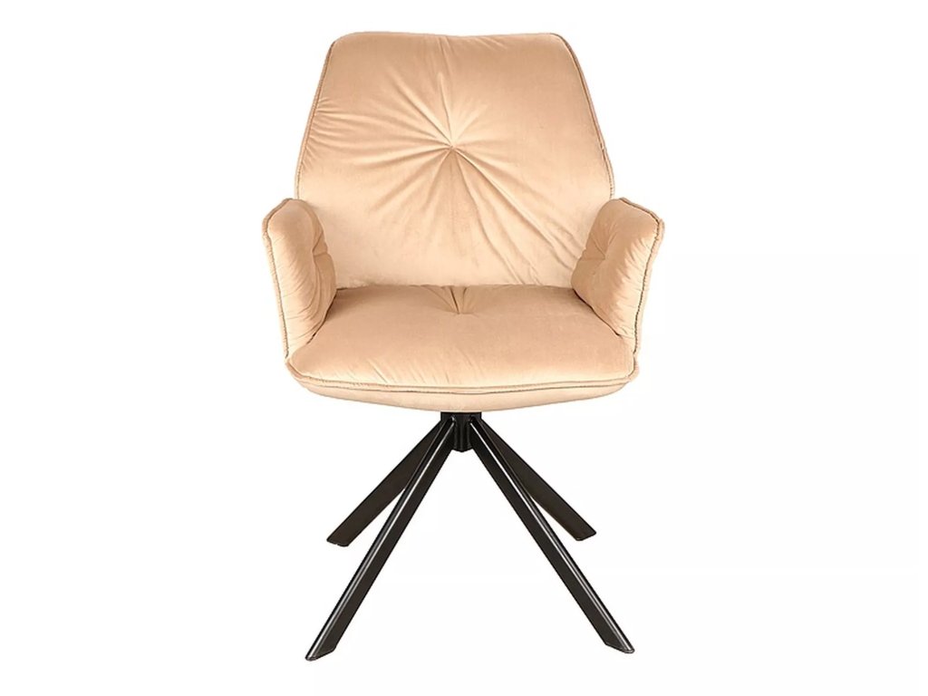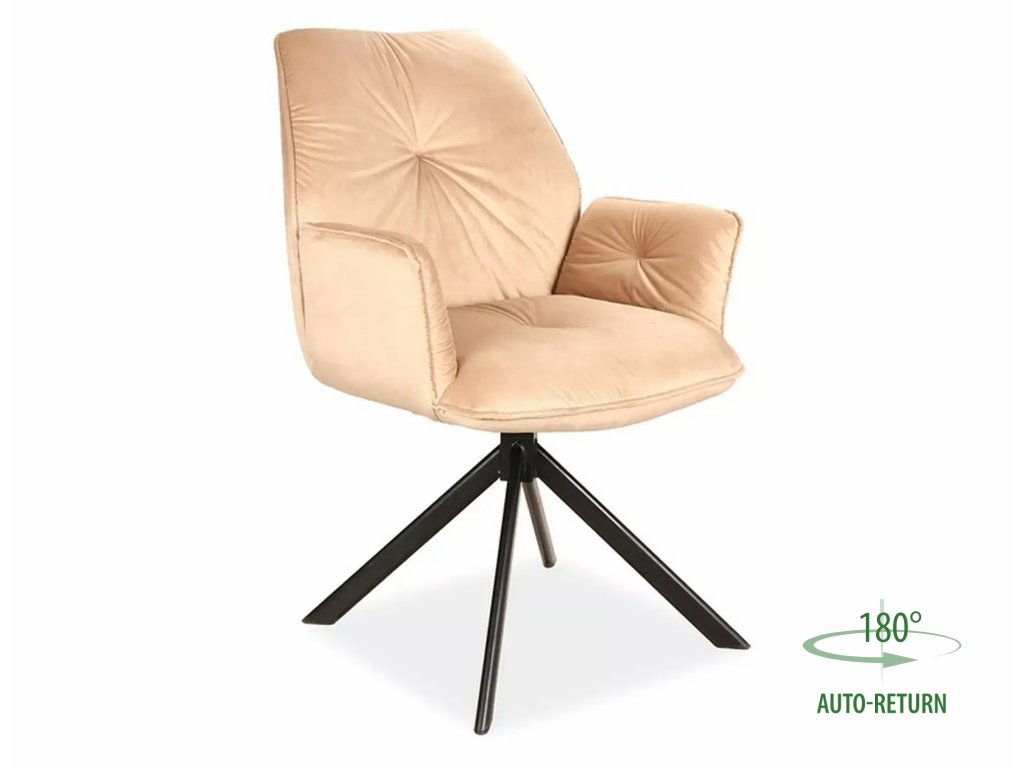 Židle, sametová látka: Bluvel, barva: béžová 28 / kovová matná černá. Sedák otočný o 180 stupňů s funkcí návratu. K dispozici je také židle Boogie I - bez područek.