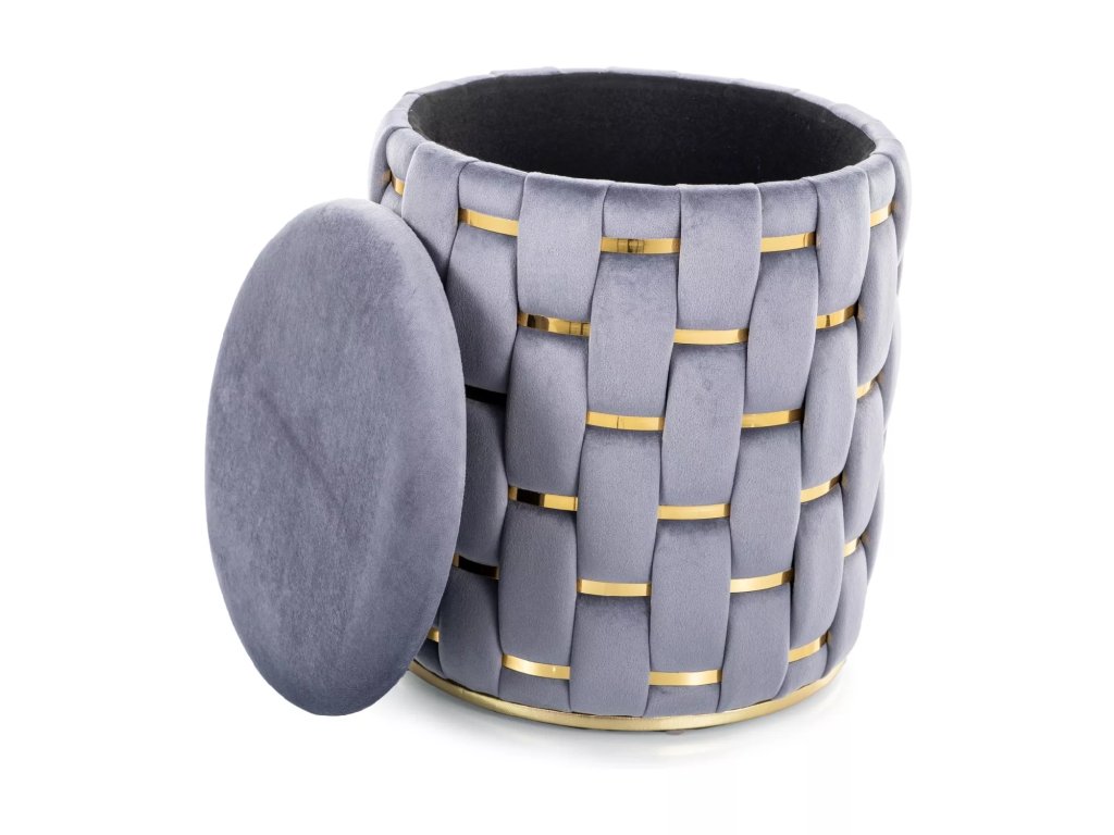 Puf s úložným prostorem, sametová látka, barva: šedá, čalounění 252.