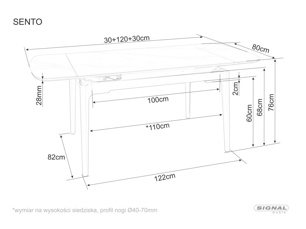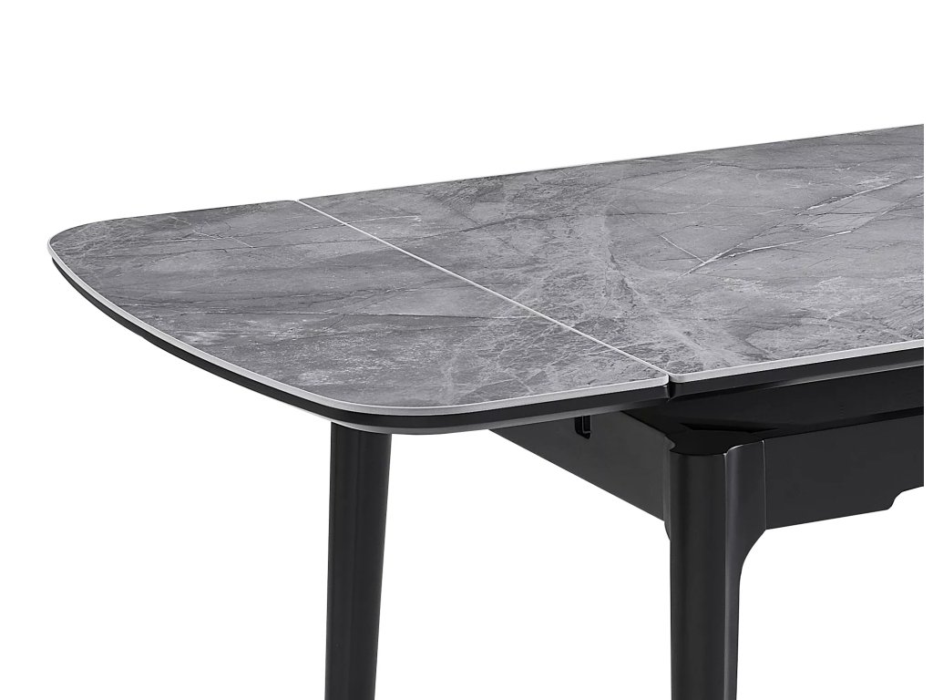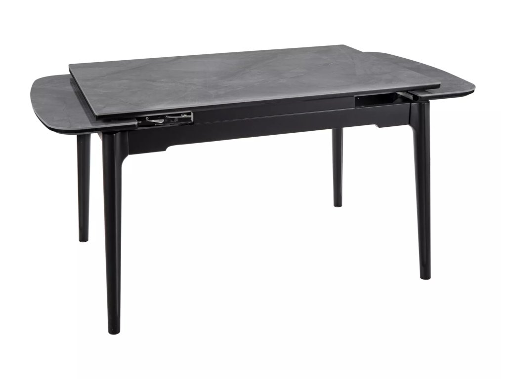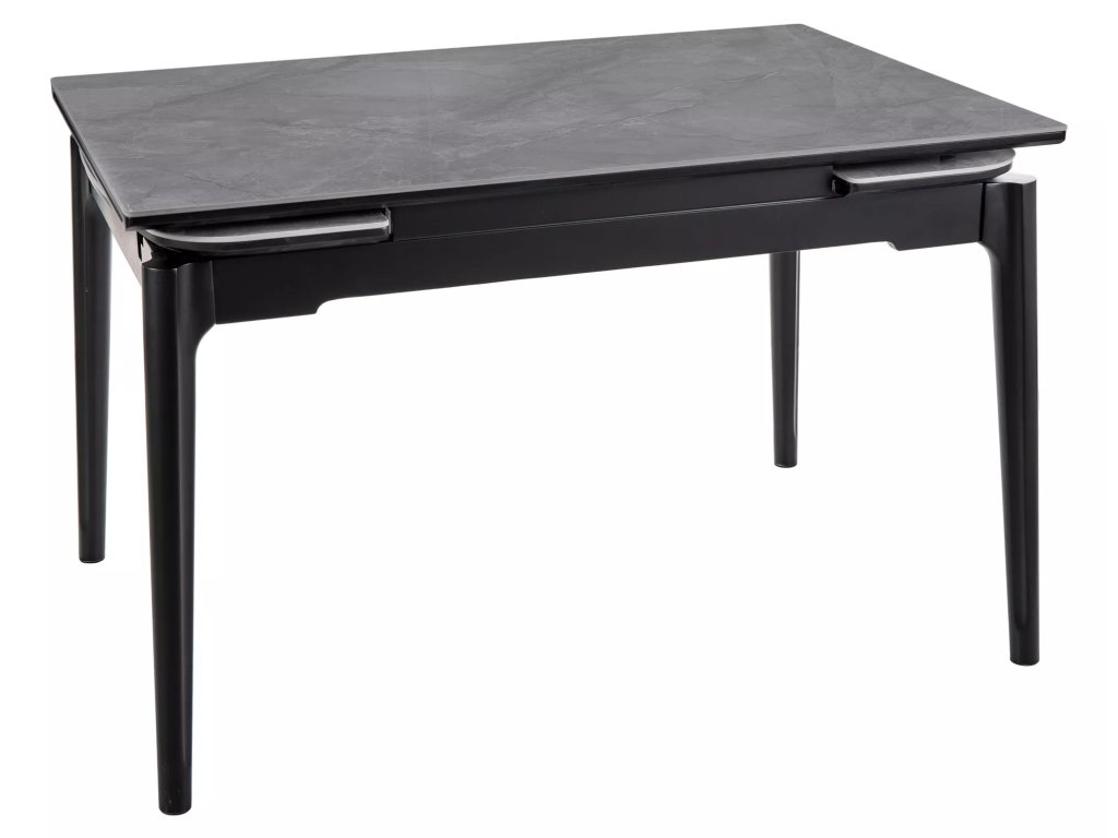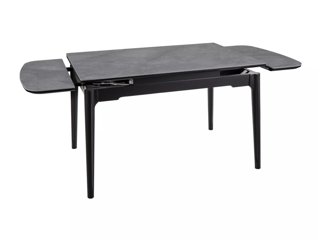 Rozkládací stůl, deska: keramika, rám: dřevo, barva: lesklá šedá / matná černá.