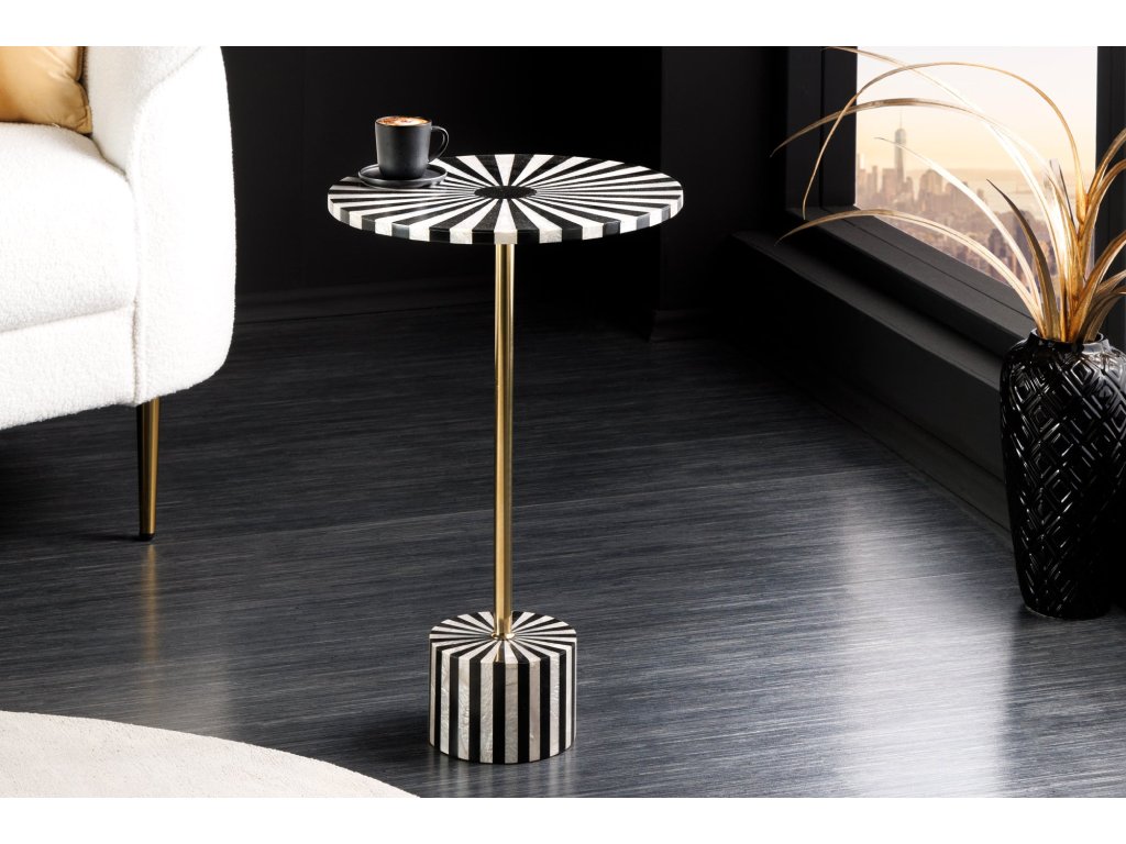 Odkládací stolek HARMONY NATURE 55cm BONE INLAY černá bílá