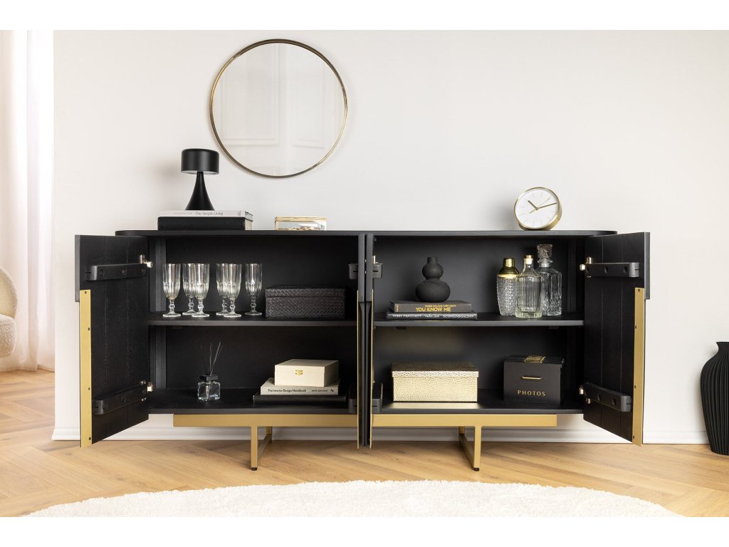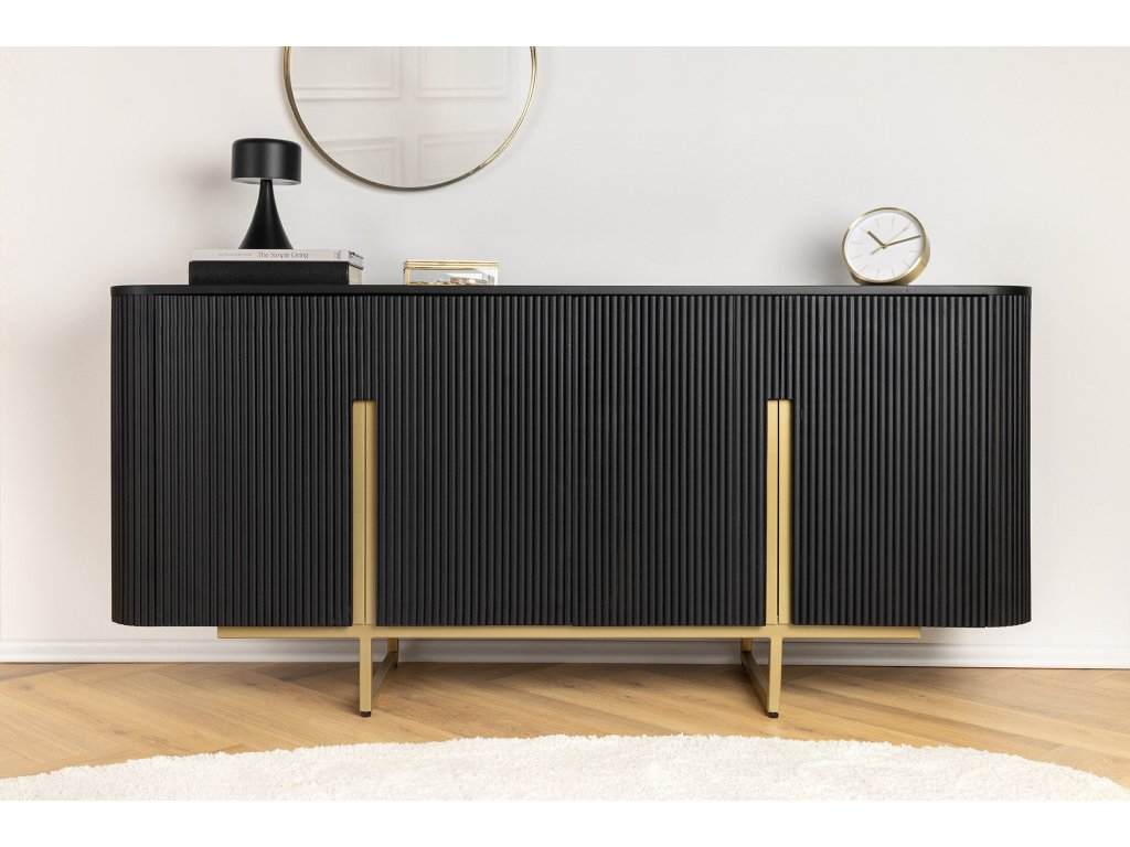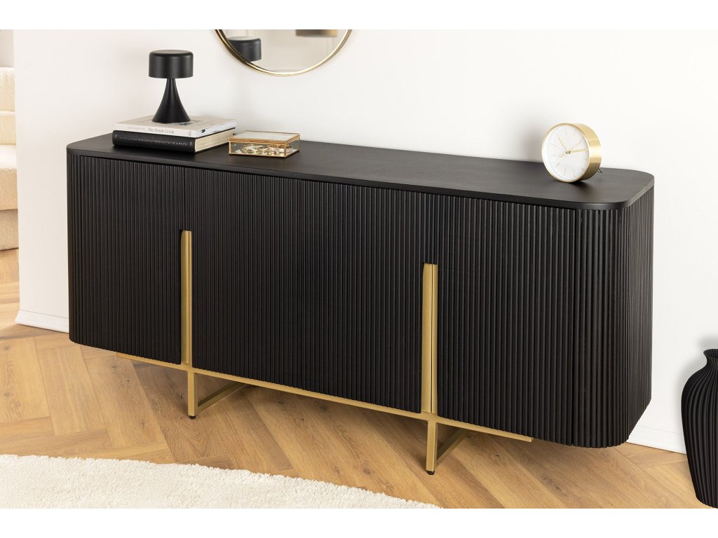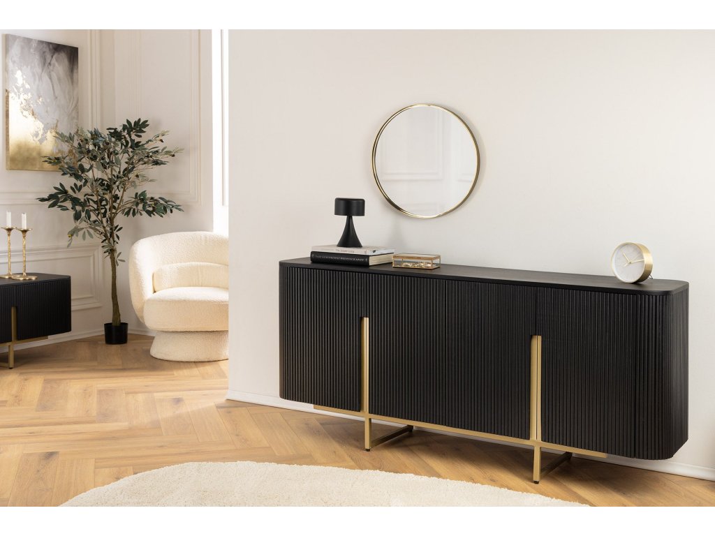 Příborník GATSBY 160cm retro styl mango černá zlatá ručně vyrobená