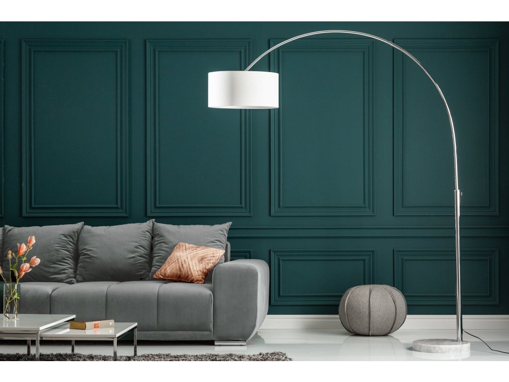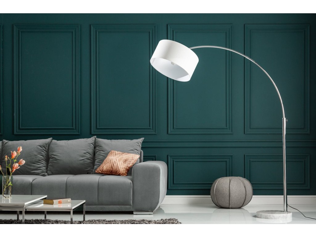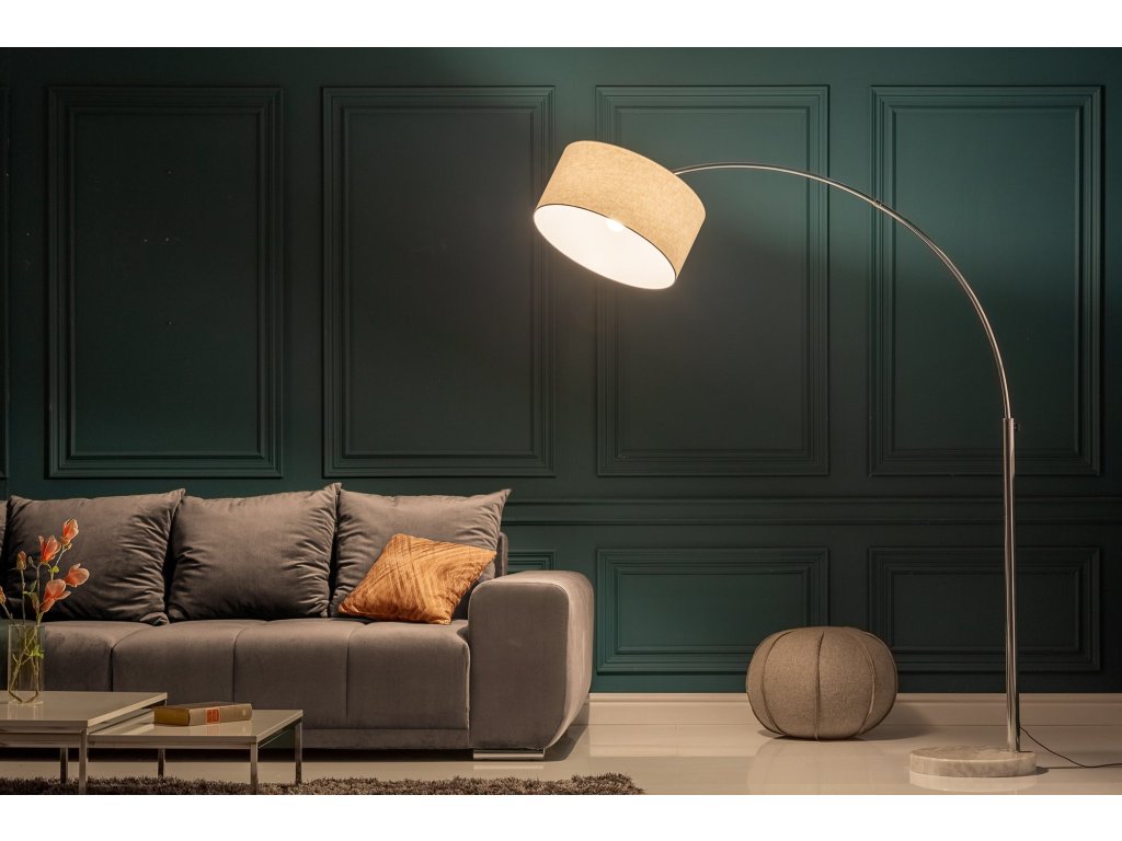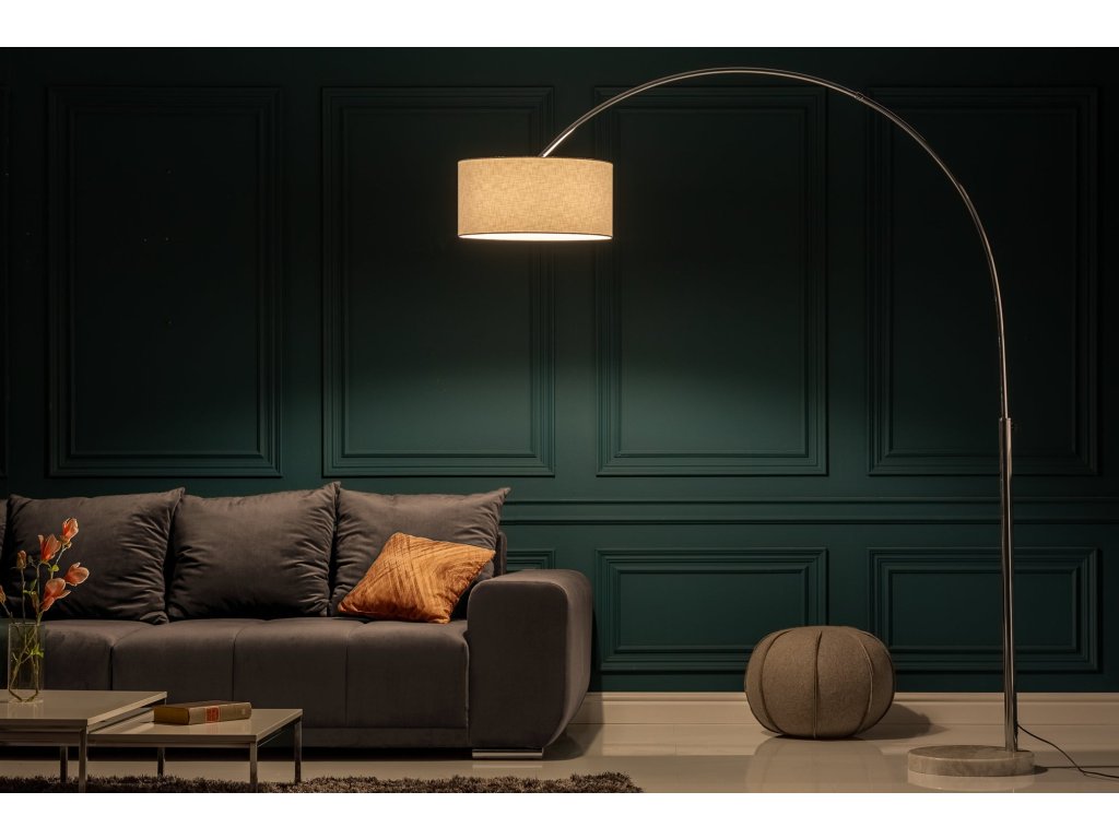 Stojací lampa BIG BOW 170-180cm lněná bílá s mramorovou základnou