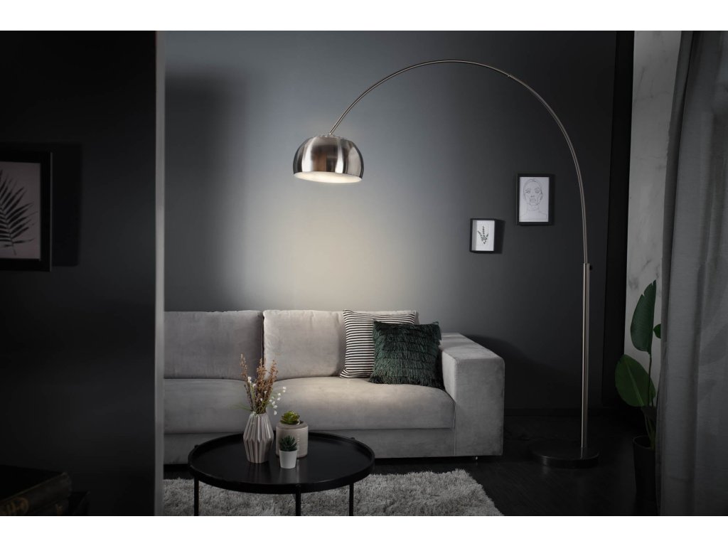 Stojací lampa BIG BOW 170-210cm saténový chrom s mramorovou základnou
