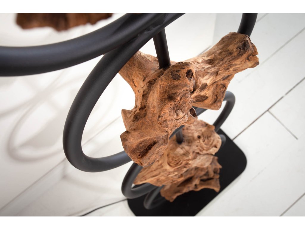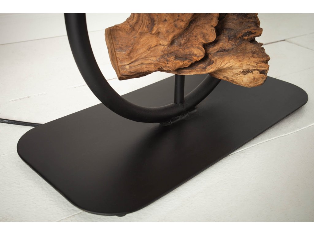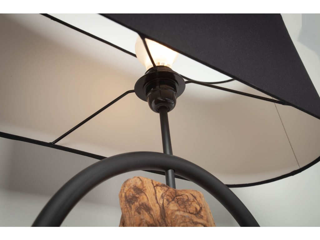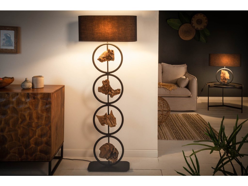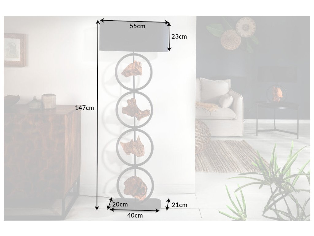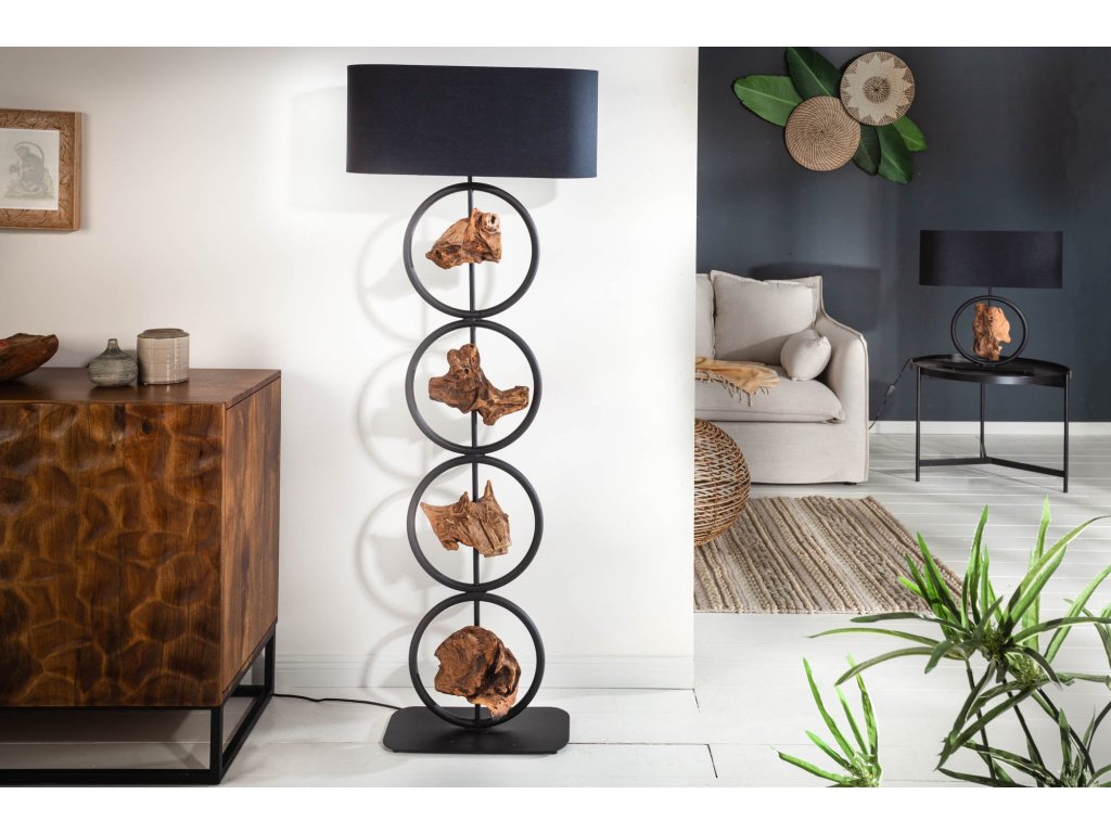 Stojací lampa ELEMENTS 150 cm s prvky z recyklovaného akáciového dřeva s bavlněným odstínem černé