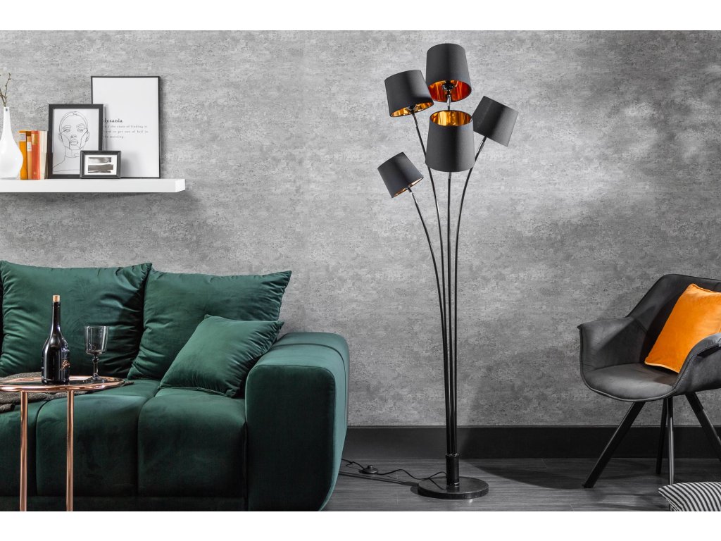 Stojací lampa LEVELS 175cm 5 plátěných odstínů černé zlato