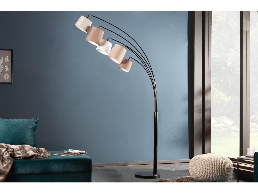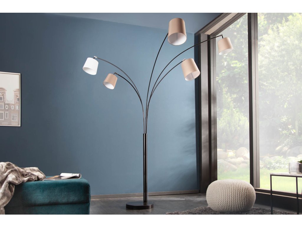 Stojací lampa LEVELS 5 plátěných odstínů béžově hnědá s mramorovým podstavcem