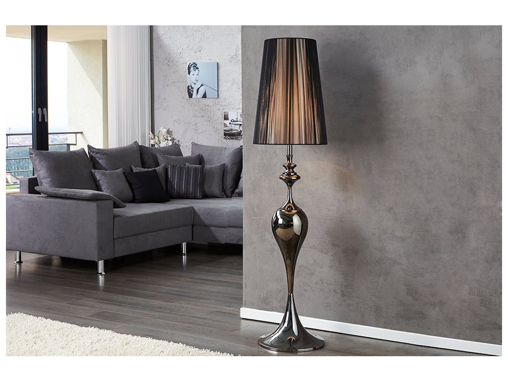 Stojací lampa LUCIE 160cm černé nylonové stínidlo barokního stylu