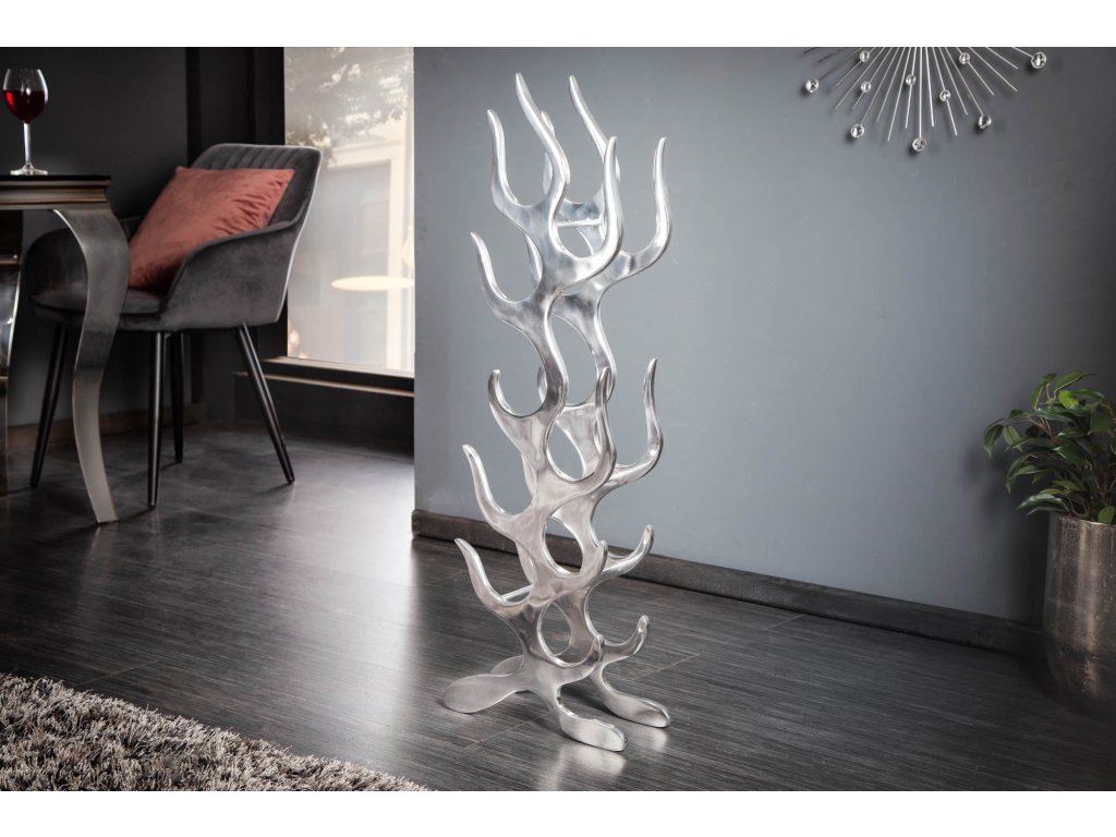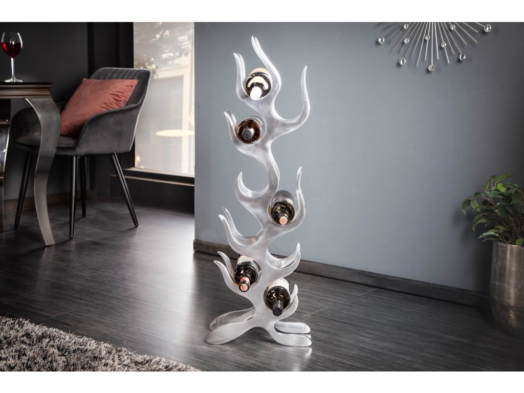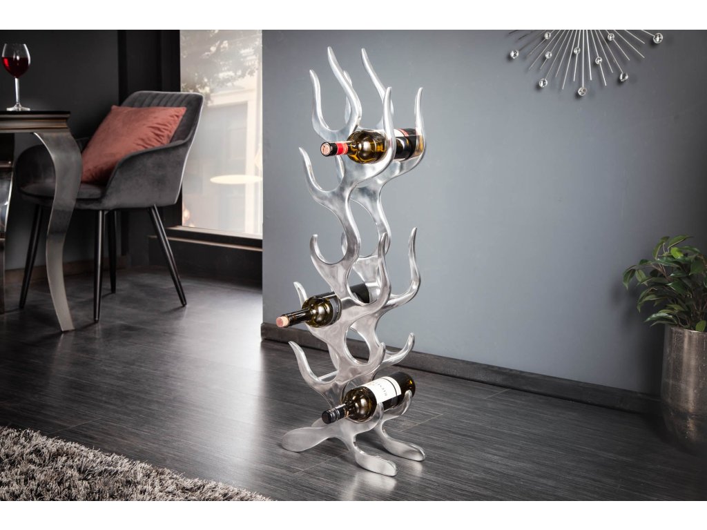 Stojan na víno FLAMES L 93cm hliník stříbrný