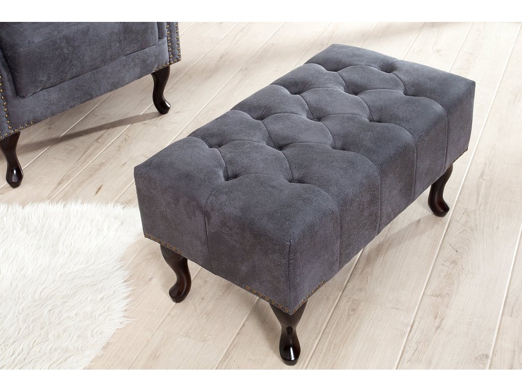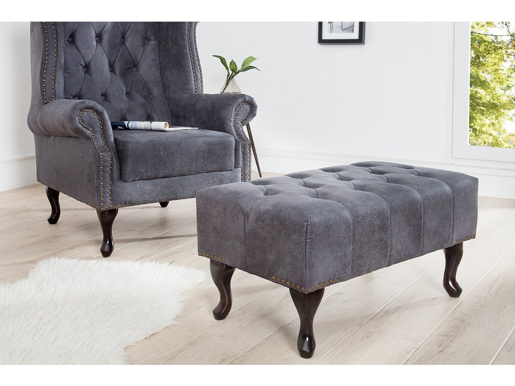 Stolička CHESTERFIELD starožitný vzhled z mikrovlákna šedá