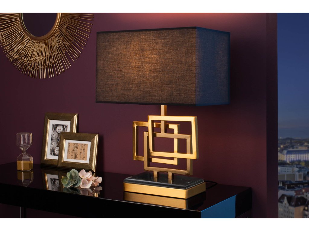 Stolní lampa ATLANTIS 56cm zlatá s látkovým stínidlem černá