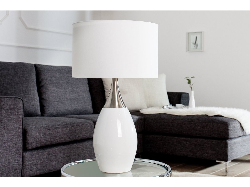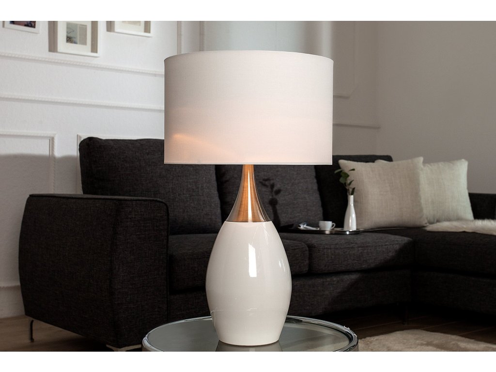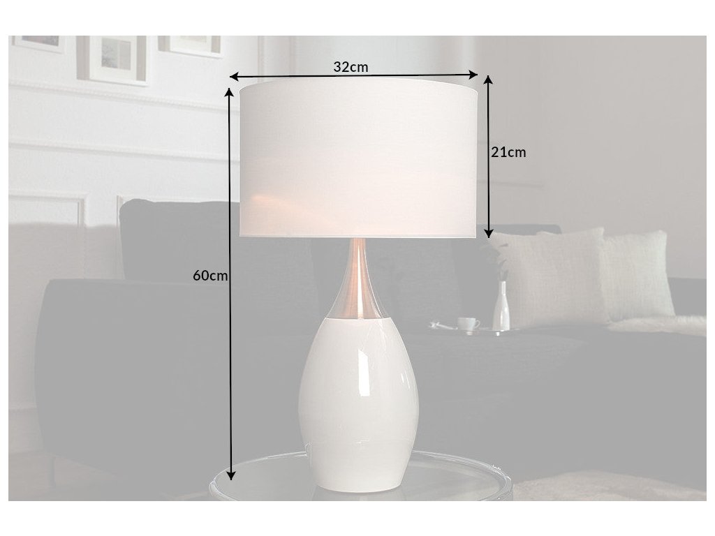 Stolní lampa CARLA 60cm plátěné stínidlo bílé