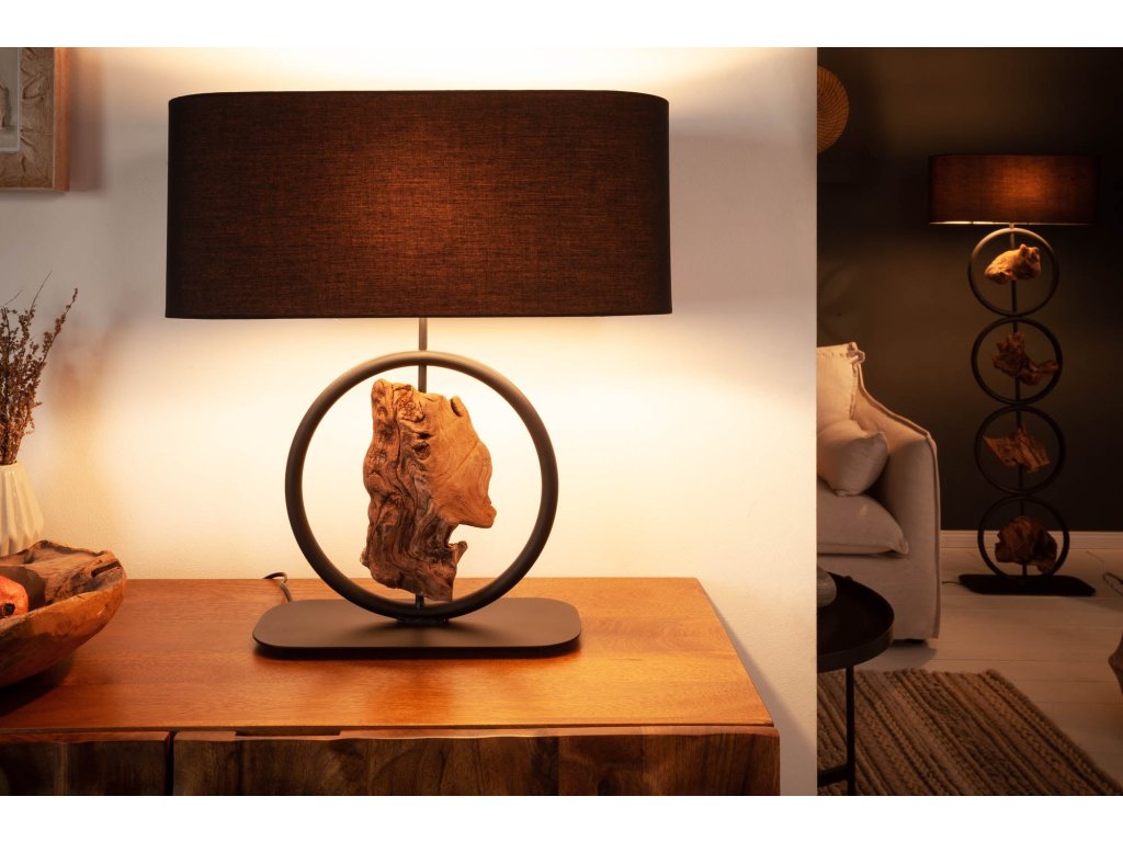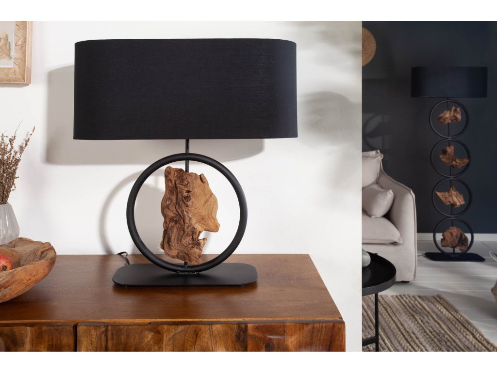 Stolní lampa ELEMENTS 60 cm prvek z recyklovaného akáciového dřeva s bavlněným stínidlem černý