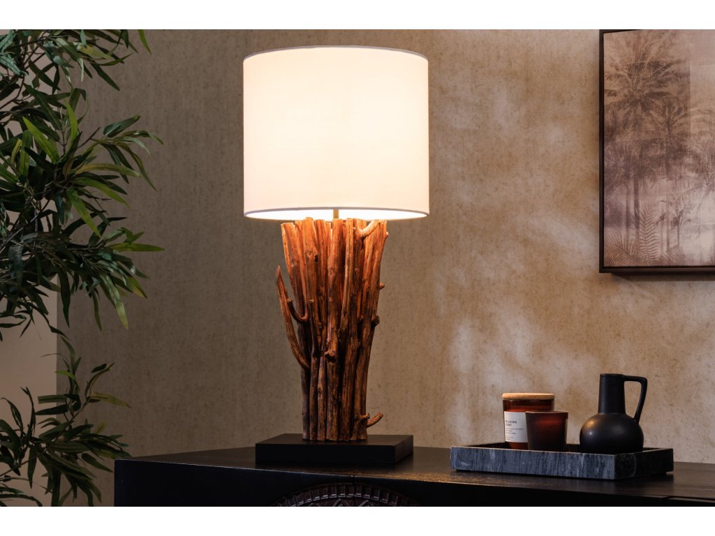 Stolní lampa EUPHORIA I 60cm longan wood bavlněné stínidlo