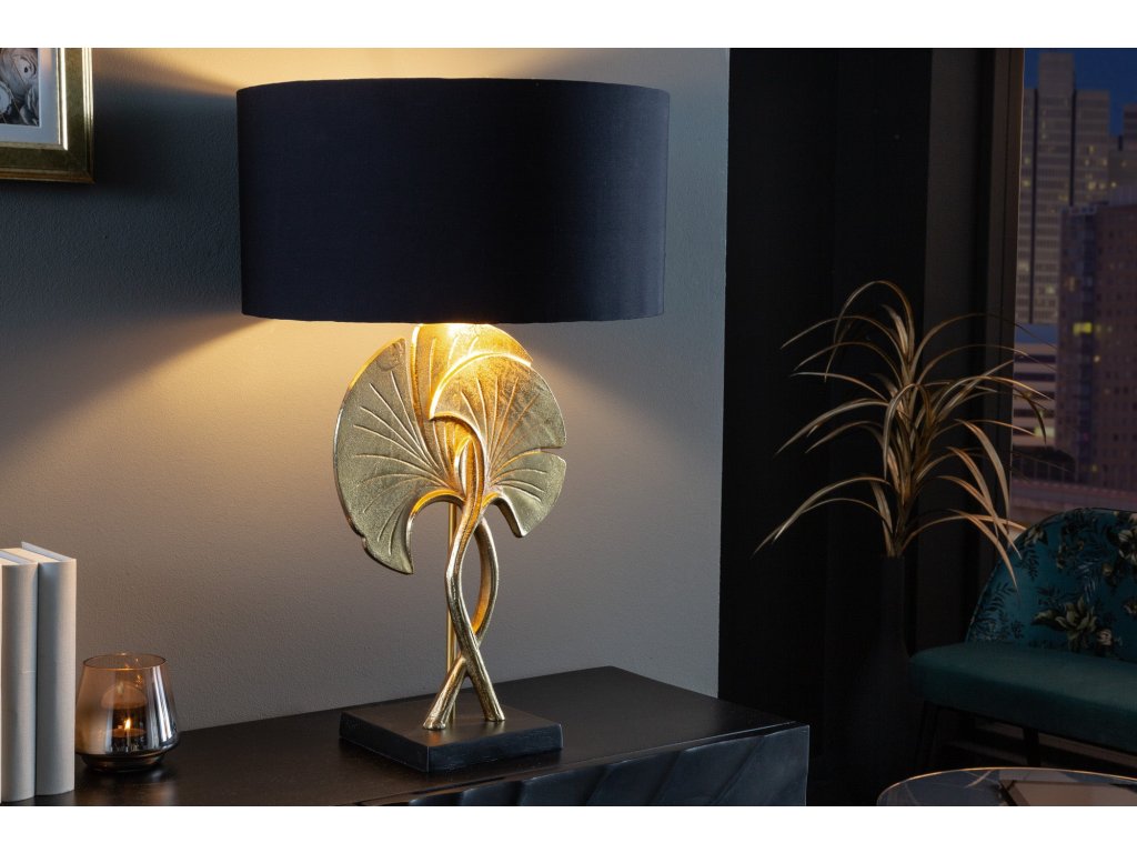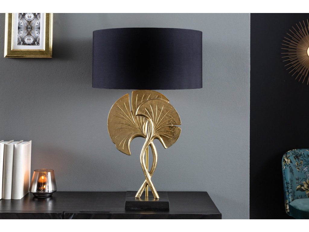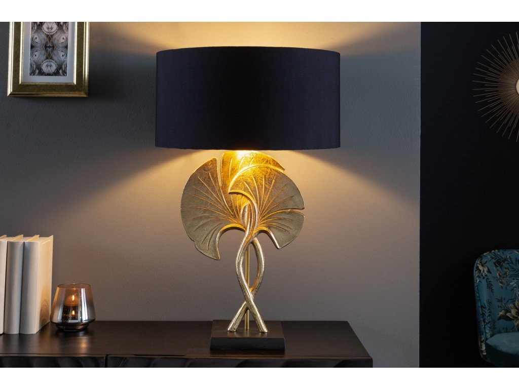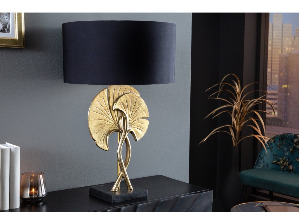 Stolní lampa GINKGO 62cm zlaté bavlněné stínidlo černé