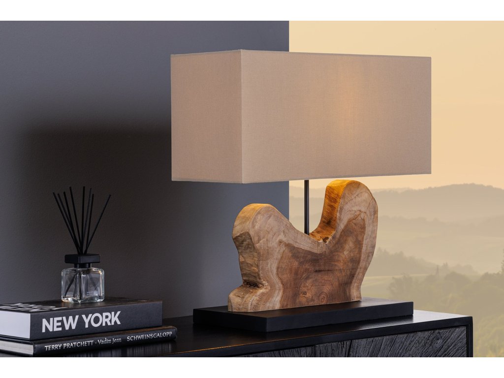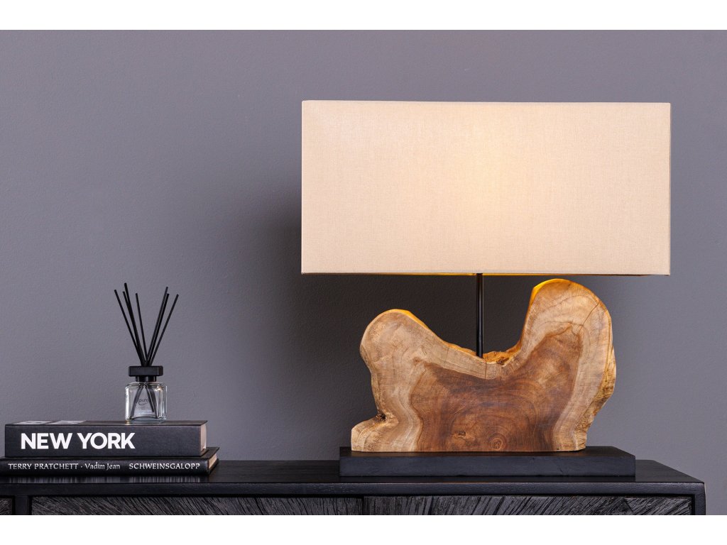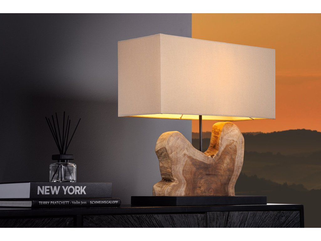 Stolní lampa HYPNOTIC 50cm stínidlo béžové teakové dřevo přírodní