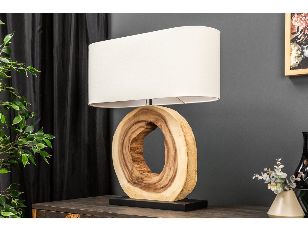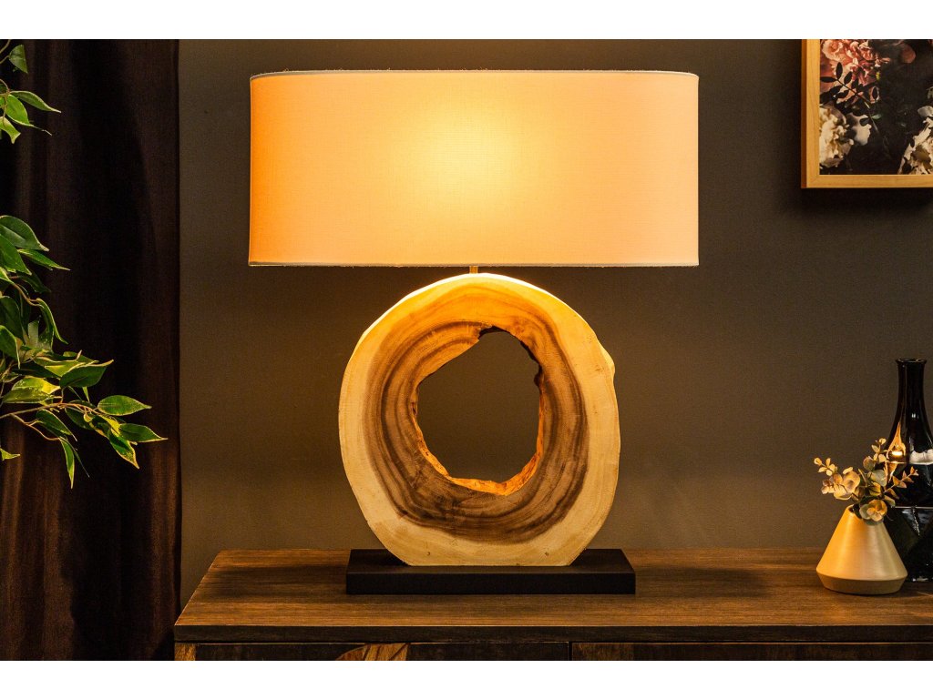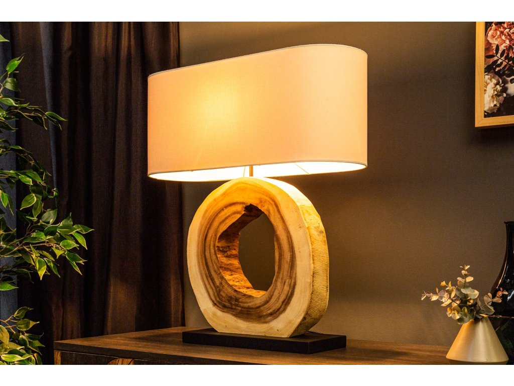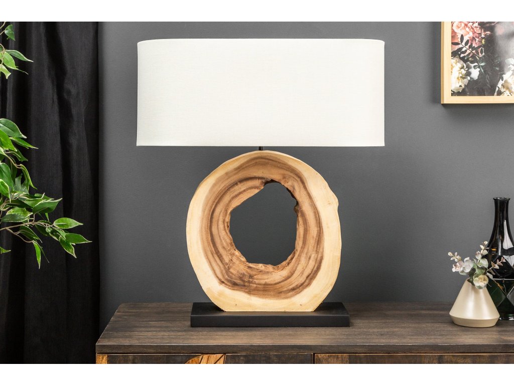 Stolní lampa ORGANIC ARTWORK 55cm masivní ořechové dřevo lněné odstín béžová