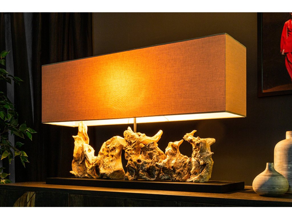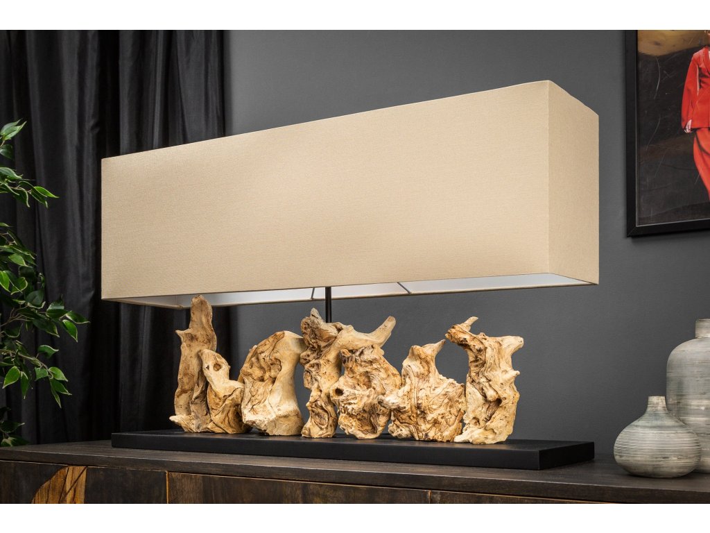 Stolní lampa PURE UNIQUE 80cm naplavené dřevo lněné stínidlo béžové