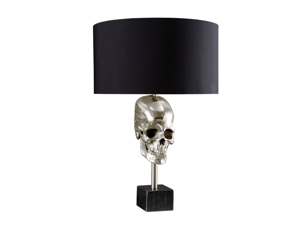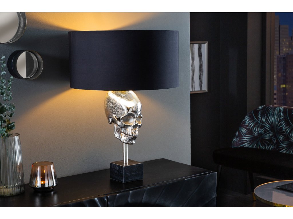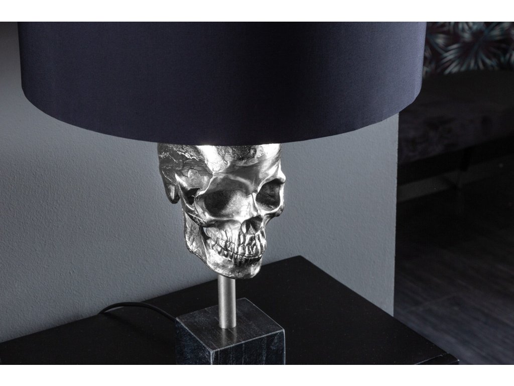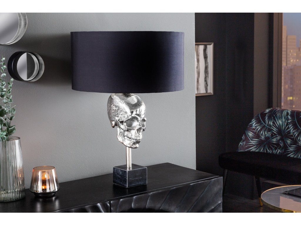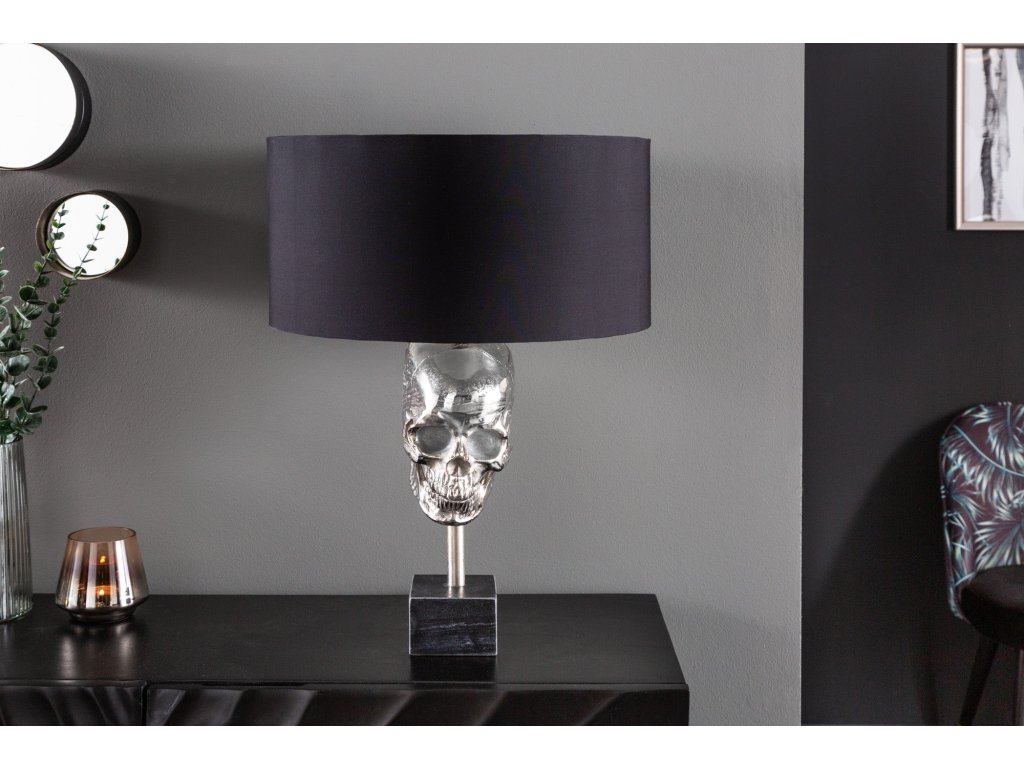 Stolní lampa SKULL 56cm stříbrné bavlněné stínidlo černé