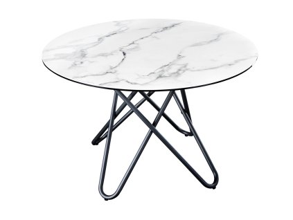 Jídelní stůl SIGNATURE 135 cm kulatý kovový rám s černou kostrou a keramicko-šedou mramorovou deskou