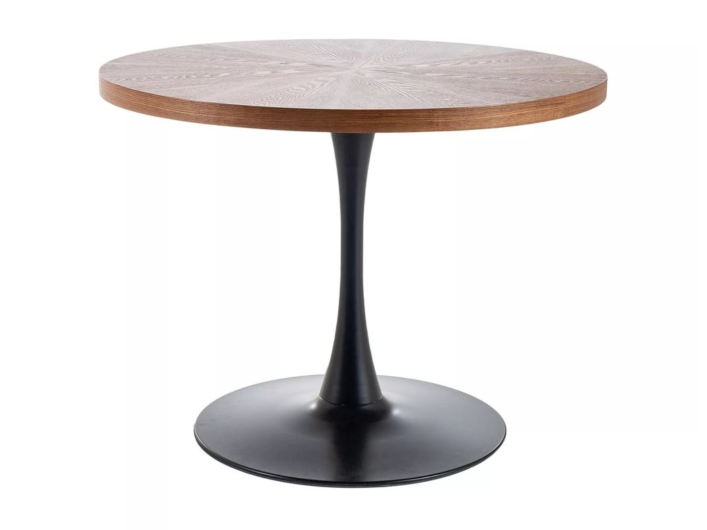 Stůl, deska: MDF + přírodní ořechová dýha, rám: kov, barva: ořech / matná černá.