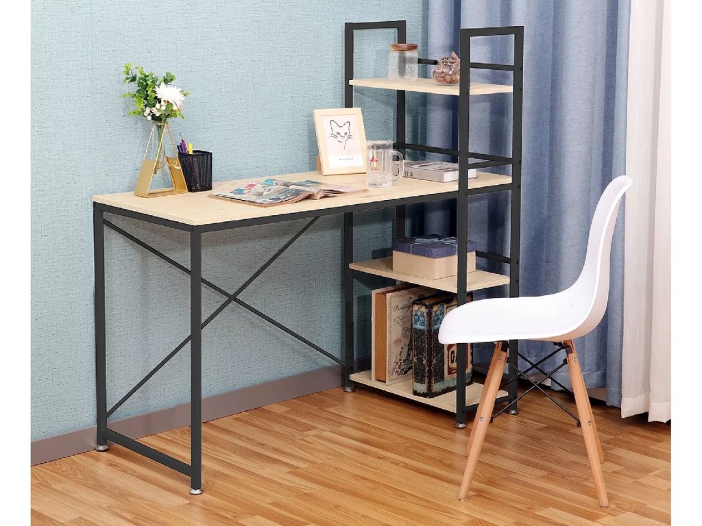 Psací stůl, deska: laminovaná deska, rám: kov, barva: dub / matná černá. Výška s prodloužením: 113 cm. Univerzální montáž - prodloužení lze namontovat na pravou nebo levou stranu.