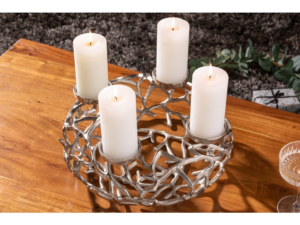 Svícen ABSTRACT 38cm 4 plameny stříbrný