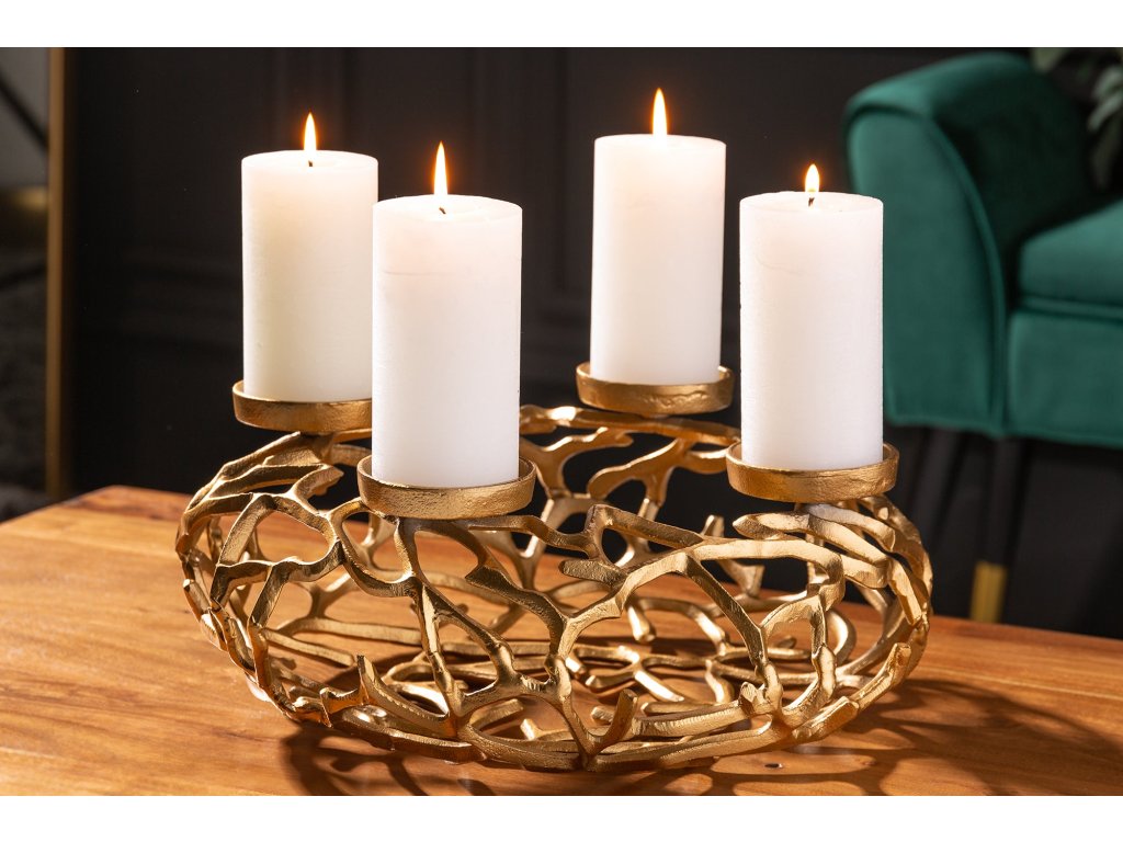 Svícen ABSTRACT 38cm 4 plameny zlatý